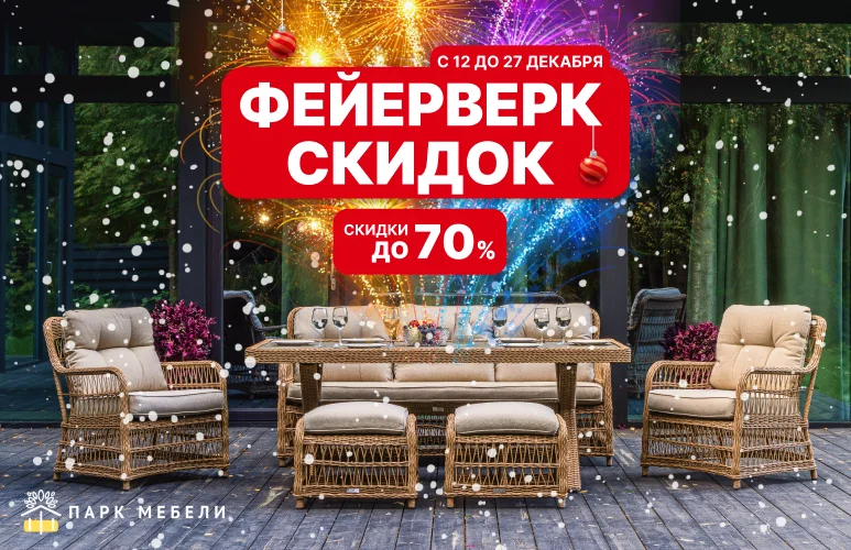 С 12 по 28 декабря в магазине ПАРК МЕБЕЛИ проходит грандиозная акция "Фейерверк скидок" – скидки до 70% на мебель и аксессуары для дома и дачи!