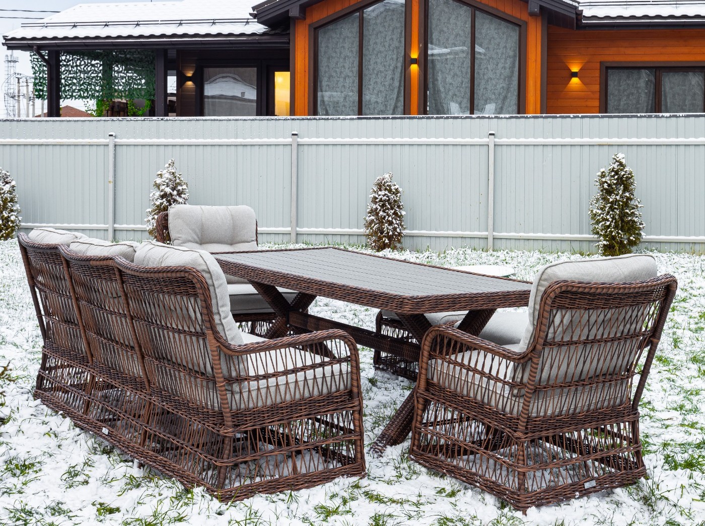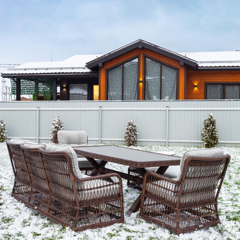 Алюминий и искусственный ротанг, которые не боятся ни мороза, ни солнца.