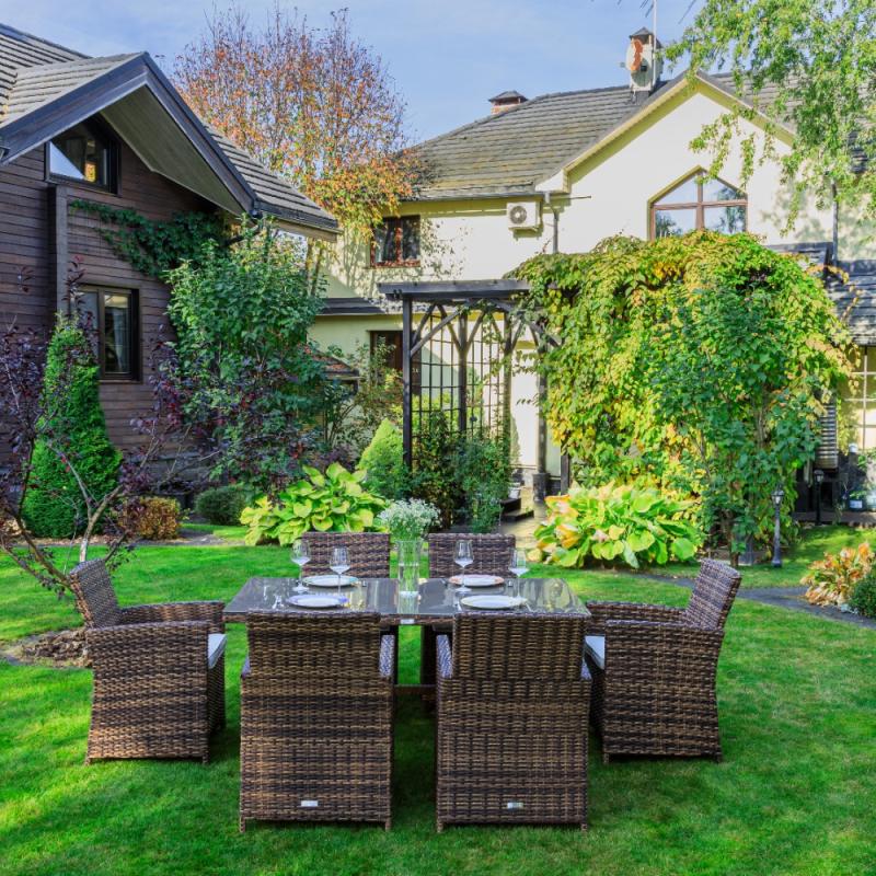 Просторный комплект для большой компании. Удобные кресла и прочный стол для продолжительных посиделок.