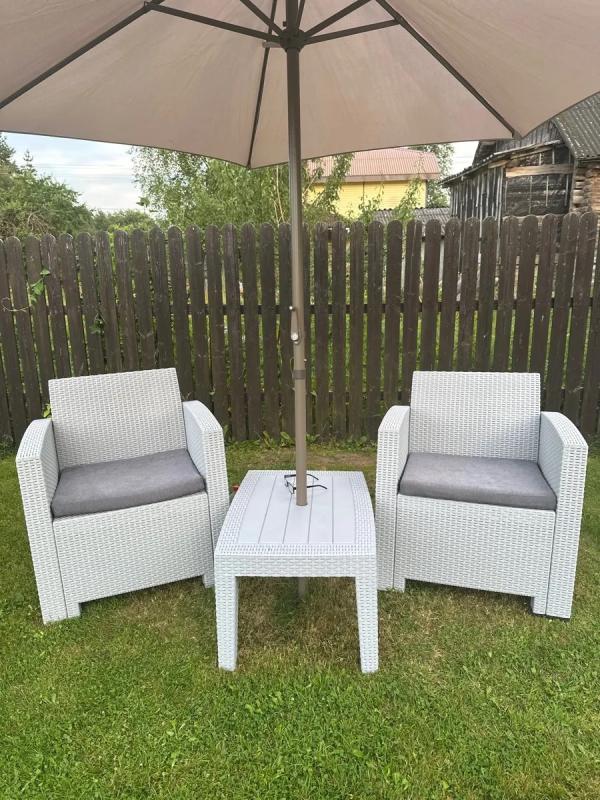 Комплект из двух кресел Royal Family LANA светло-серый во дворе под зонтом