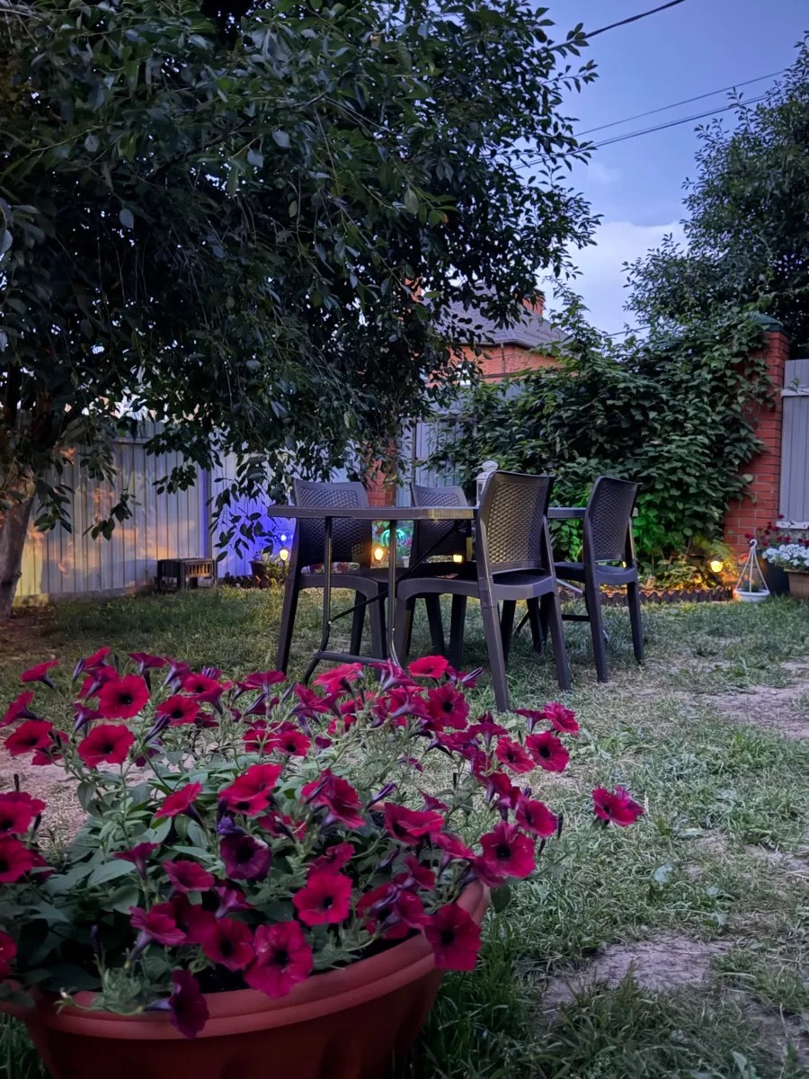 На фотографии — комплект обеденных стульев Royal Family JULY в теплом коричневом цвете, органично вписавшийся в садовый пейзаж. Их лаконичные формы и природный оттенок создают ощущение единства с окружающей зеленью.