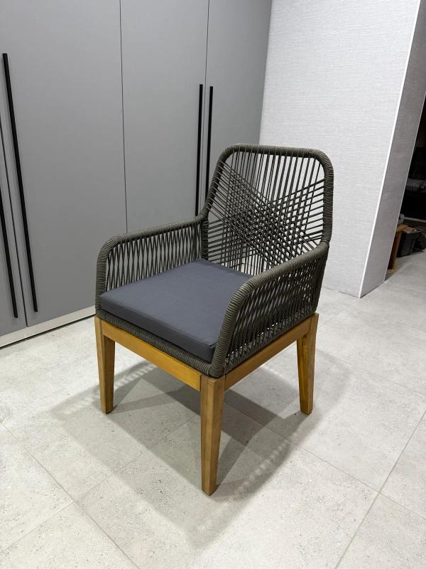 Модель сочетает благородную фактуру древесины акации с современной текстурой веревки. Каркас из акации в эффектном исполнении под тик выглядит изящно и служит долговечно. Практичная обивка из износостойкого роупа создает уникальный визуальный ритм, который хочется разглядывать бесконечно.