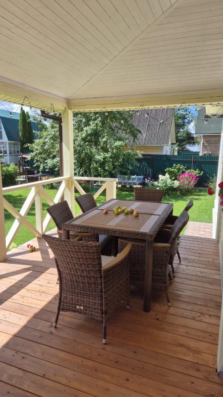 - Теплый коричневый оттенок, подчеркивающий уют веранды