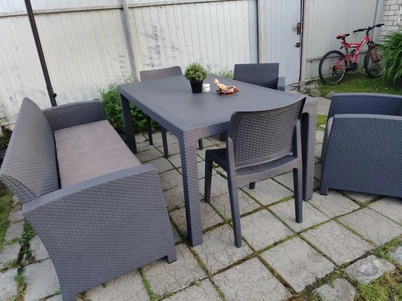 На этих фотографиях — комплект Royal Family LANA DINING XL в цвете графит, который наши клиенты выбрали для обустройства двора. Простые и лаконичные формы создают современное обеденное пространство, где приятно собираться всей семьей.