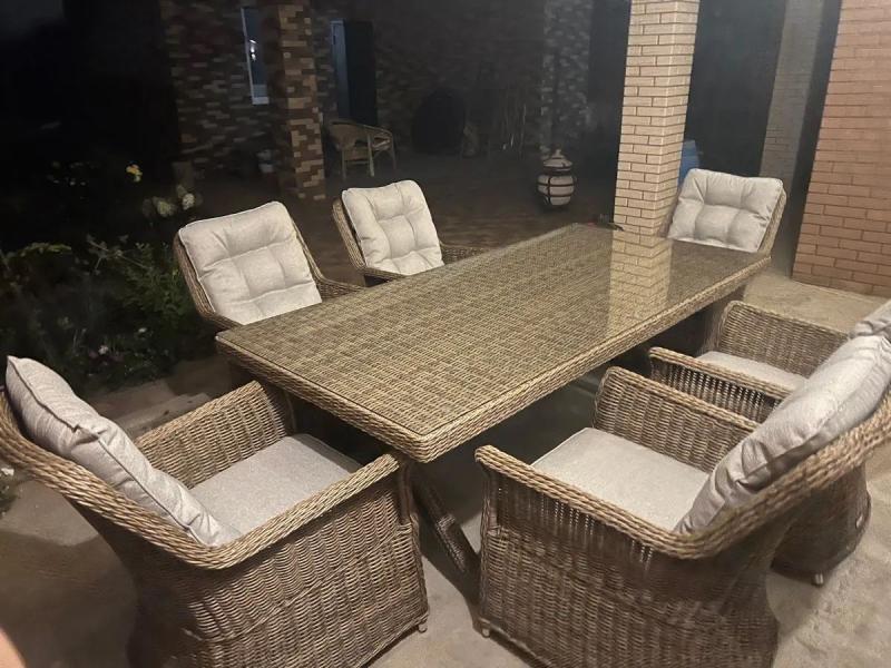 На открытой террасе загородного дома обеденный комплект Royal Family VICTOR с шестью креслами становится естественным центром притяжения. Здесь собираются за завтраком с видом на сад, устраивают долгие летние ужины и встречают гостей — место, где рождаются воспоминания.