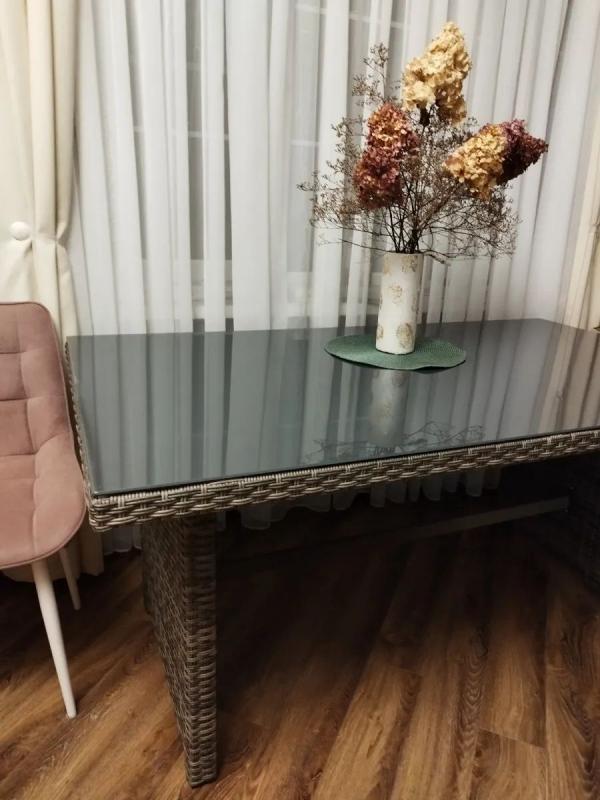 Искусственный ротанг первичной категории неприхотлив в уходе, устойчив к влаге и температурным перепадам от -50°C до +50°C. Стеклянная столешница легко моется и долго сохраняет блеск. Это решение для тех, кто ценит универсальность: сегодня стол стоит в столовой, а завтра его можно вынести на террасу для обеда на свежем воздухе.