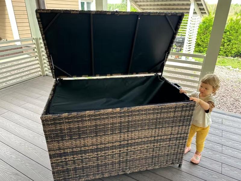 —Плетеный коричневый сундук KARL на веранде