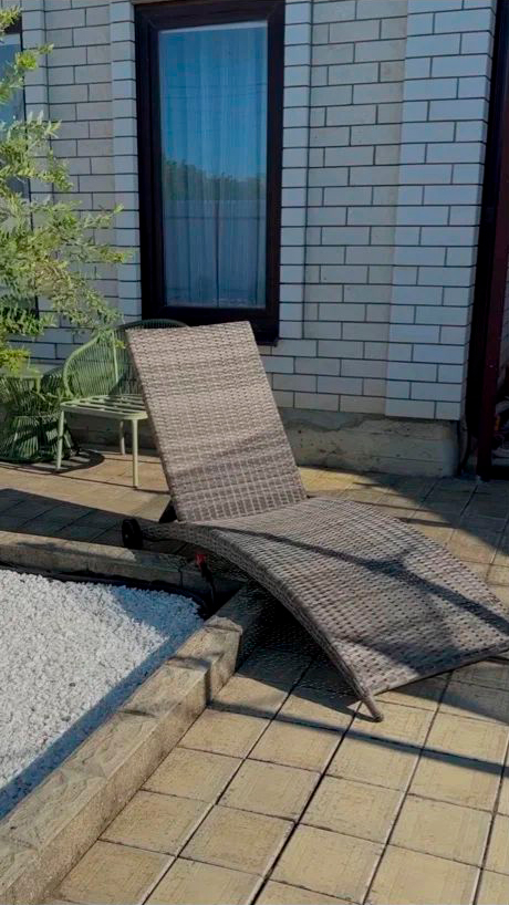 Во дворе частного дома шезлонг AGATA в сером цвете создает идеальные условия для расслабления на свежем воздухе. Двойное полукруглое плетение из искусственного ротанга придает ему выразительную текстуру, а продуманная форма обеспечивает удобное положение для отдыха.