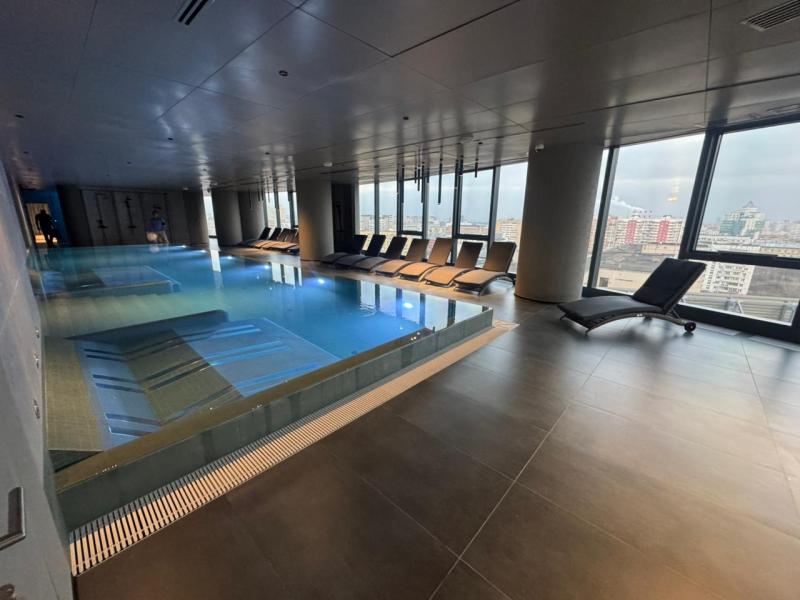 Современный бассейн, панорамные окна и город за стеклом — идеальные декорации для перезагрузки. Шезлонг AGATA в сером цвете выстроился вдоль воды, создавая ритм и порядок.