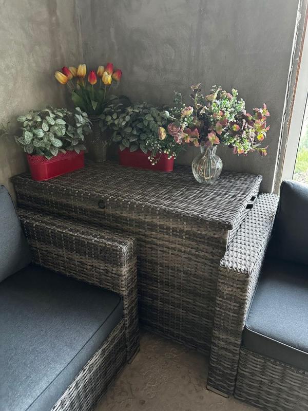 Наши клиенты создали настоящий оазис спокойствия на своей террасе! В центре композиции – сундук для хранения Royal Family KARL 120 в сером цвете. Изготовленный из искусственного ротанга ручного плетения, он не только вместительный, но и невероятно стильный.