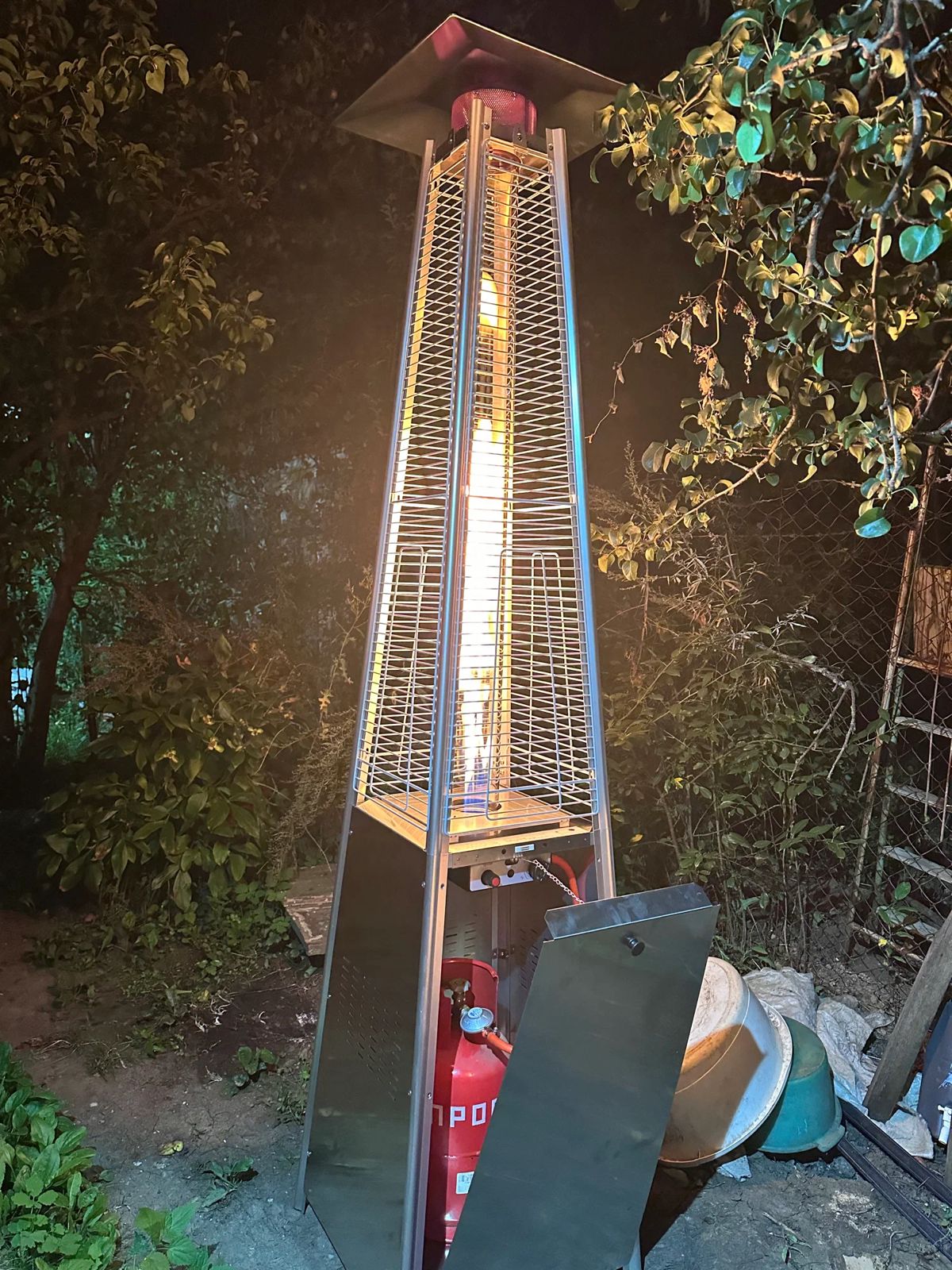 Уличный газовый обогреватель EVA из нержавеющей стали: свет тепла в ночном саду