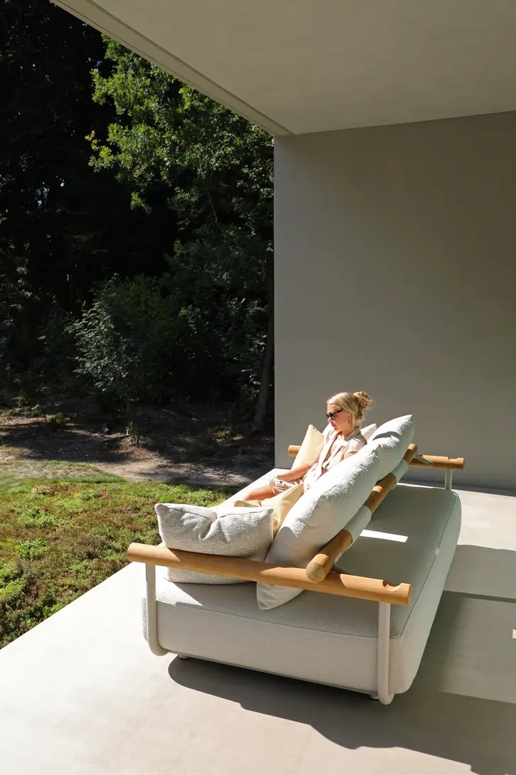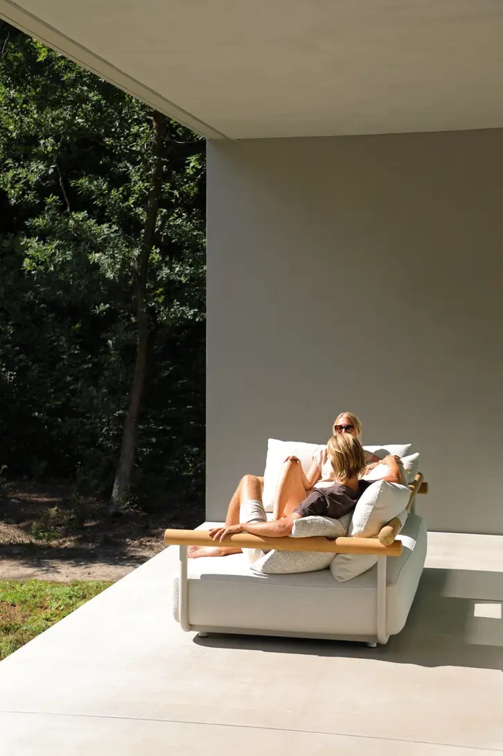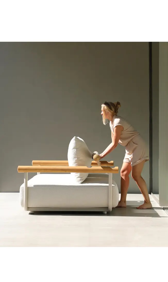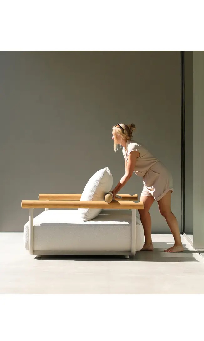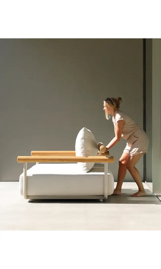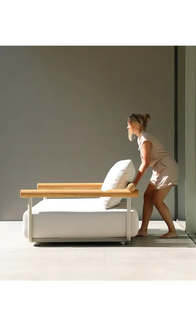 Поднимите круглую спинку и переверните ее. Подушки смещаются вместе с ней, мгновенно создавая более глубокое и удобное сиденье — идеальное для чтения, непринужденной беседы или кофе у бассейна.