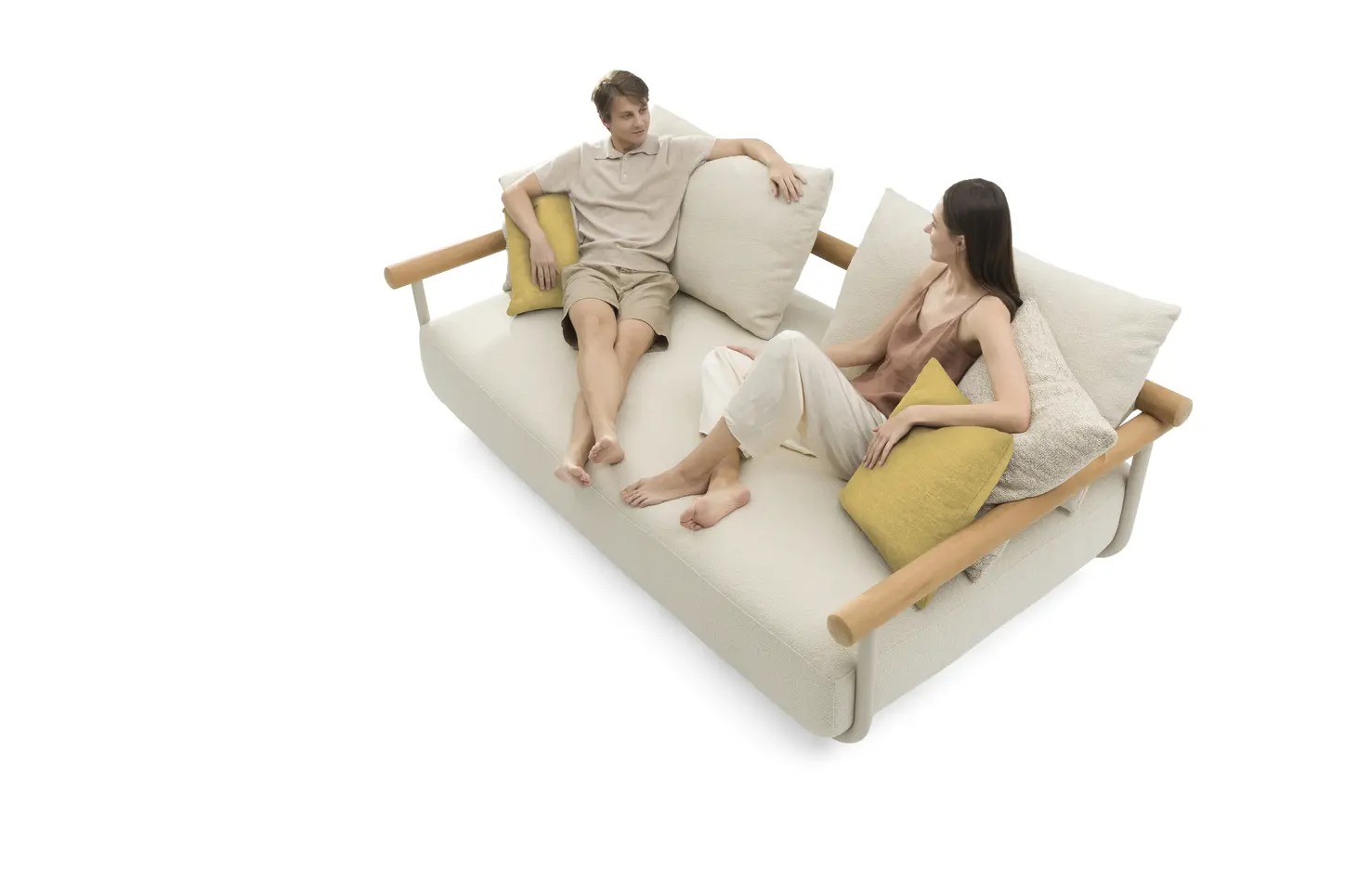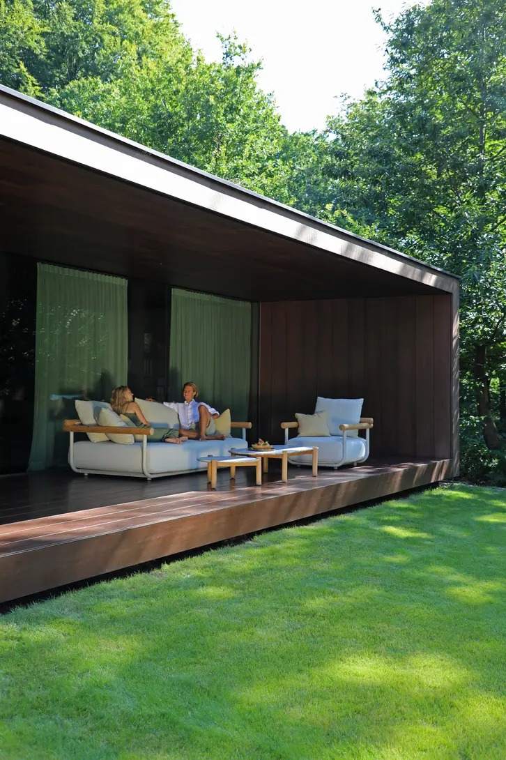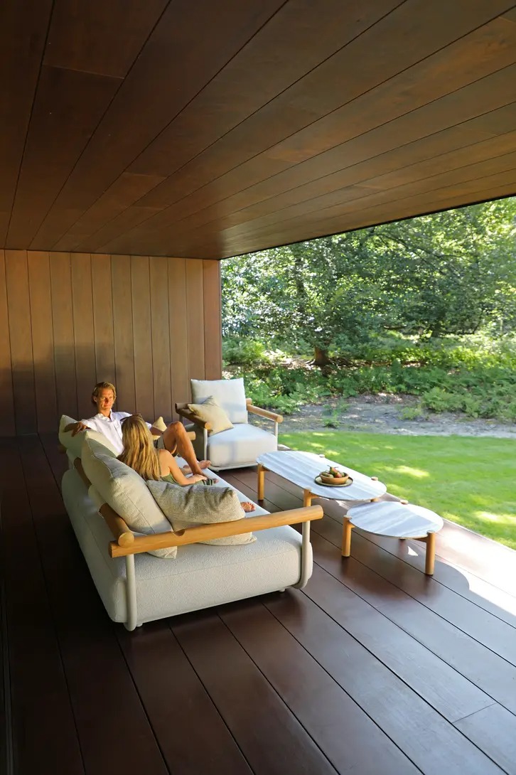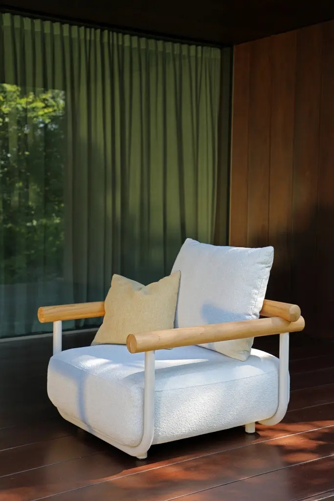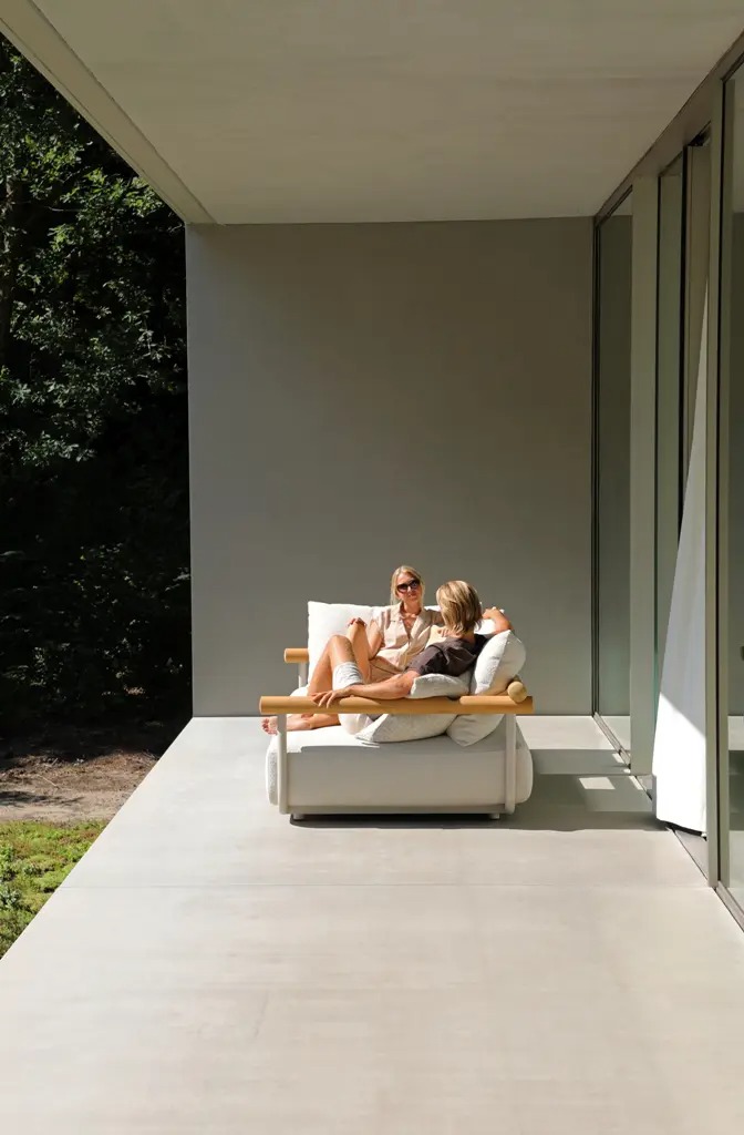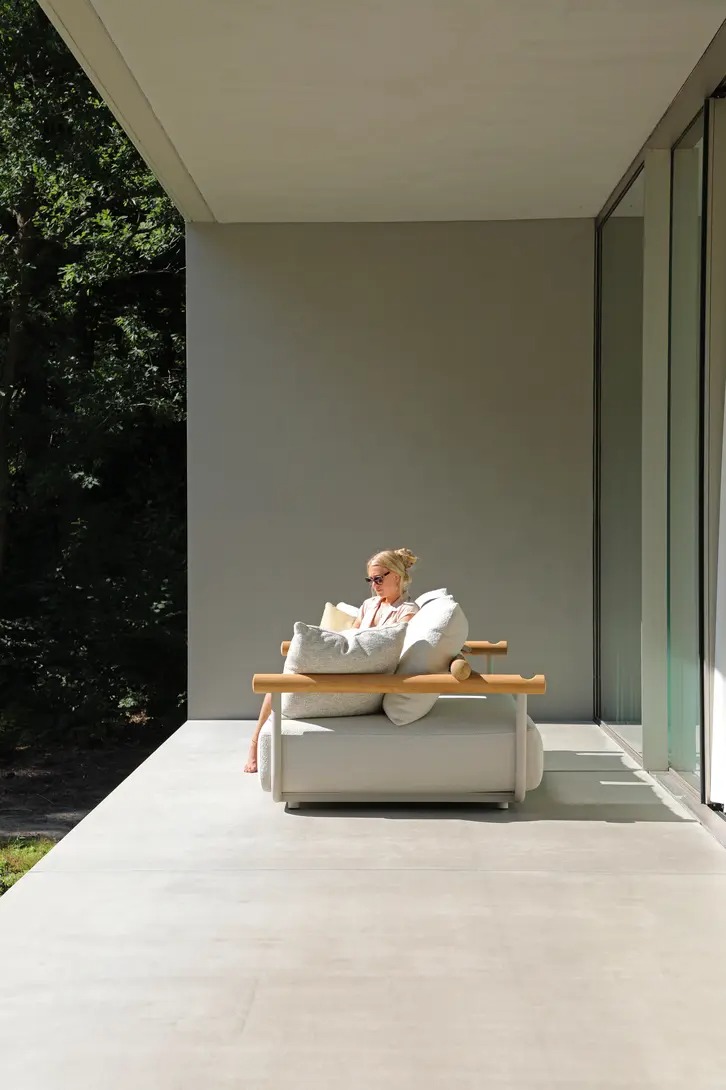 Поднимите круглую спинку и переверните ее. Подушки смещаются вместе с ней, мгновенно создавая более глубокое и удобное сиденье — идеальное для чтения, непринужденной беседы или кофе у бассейна.