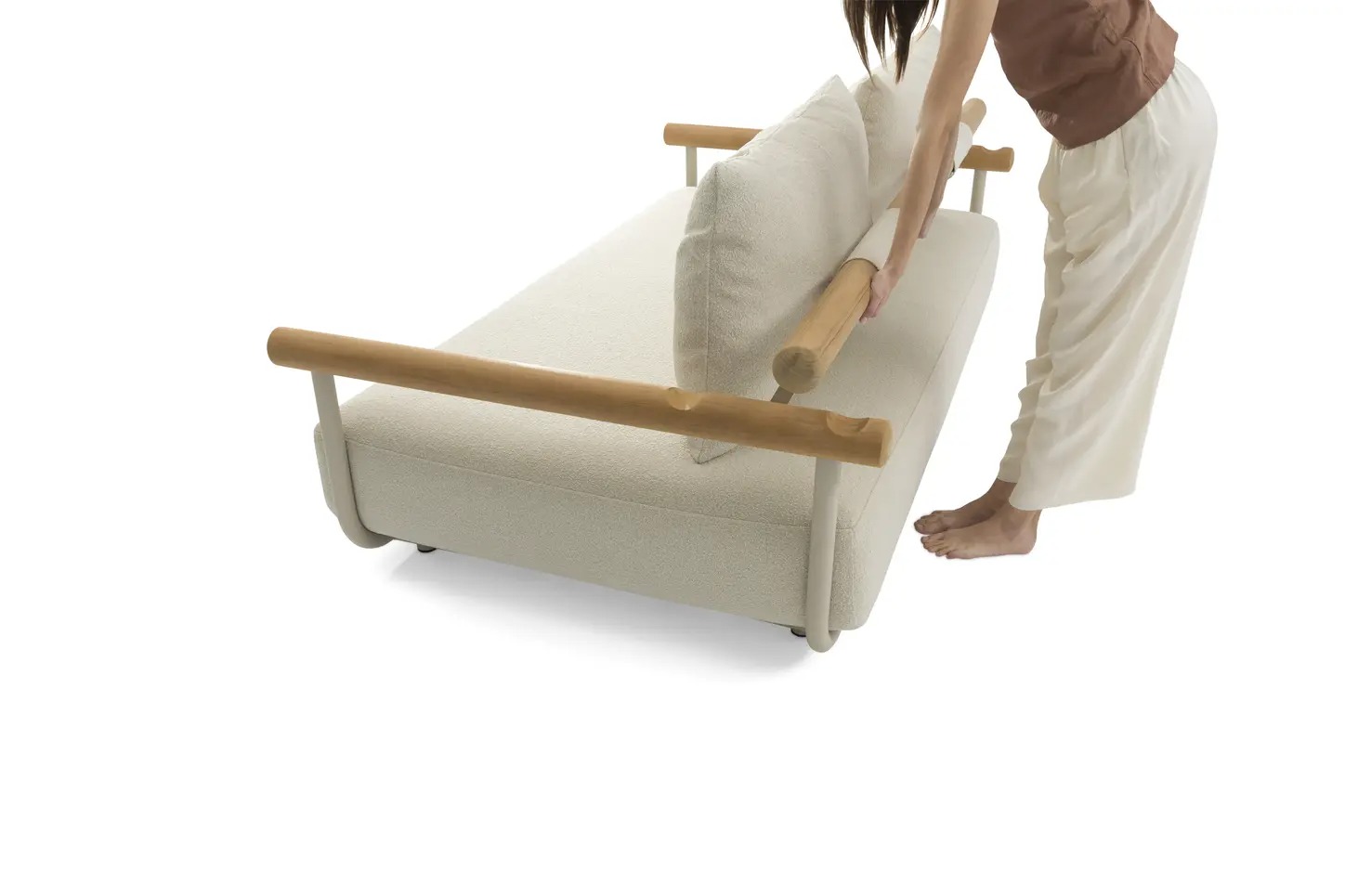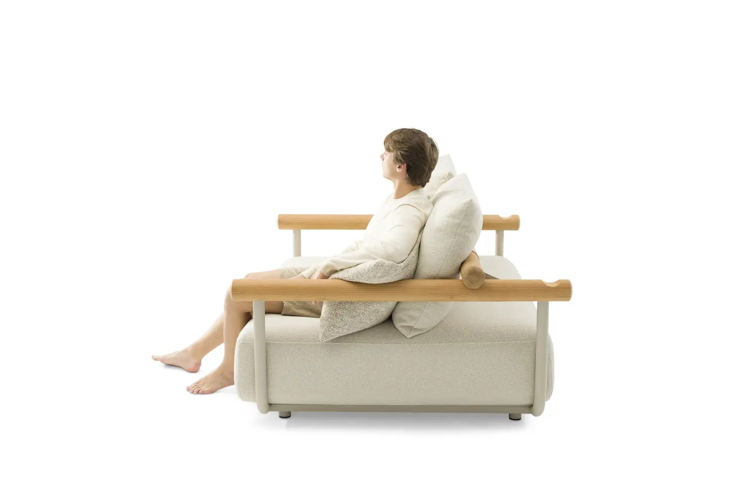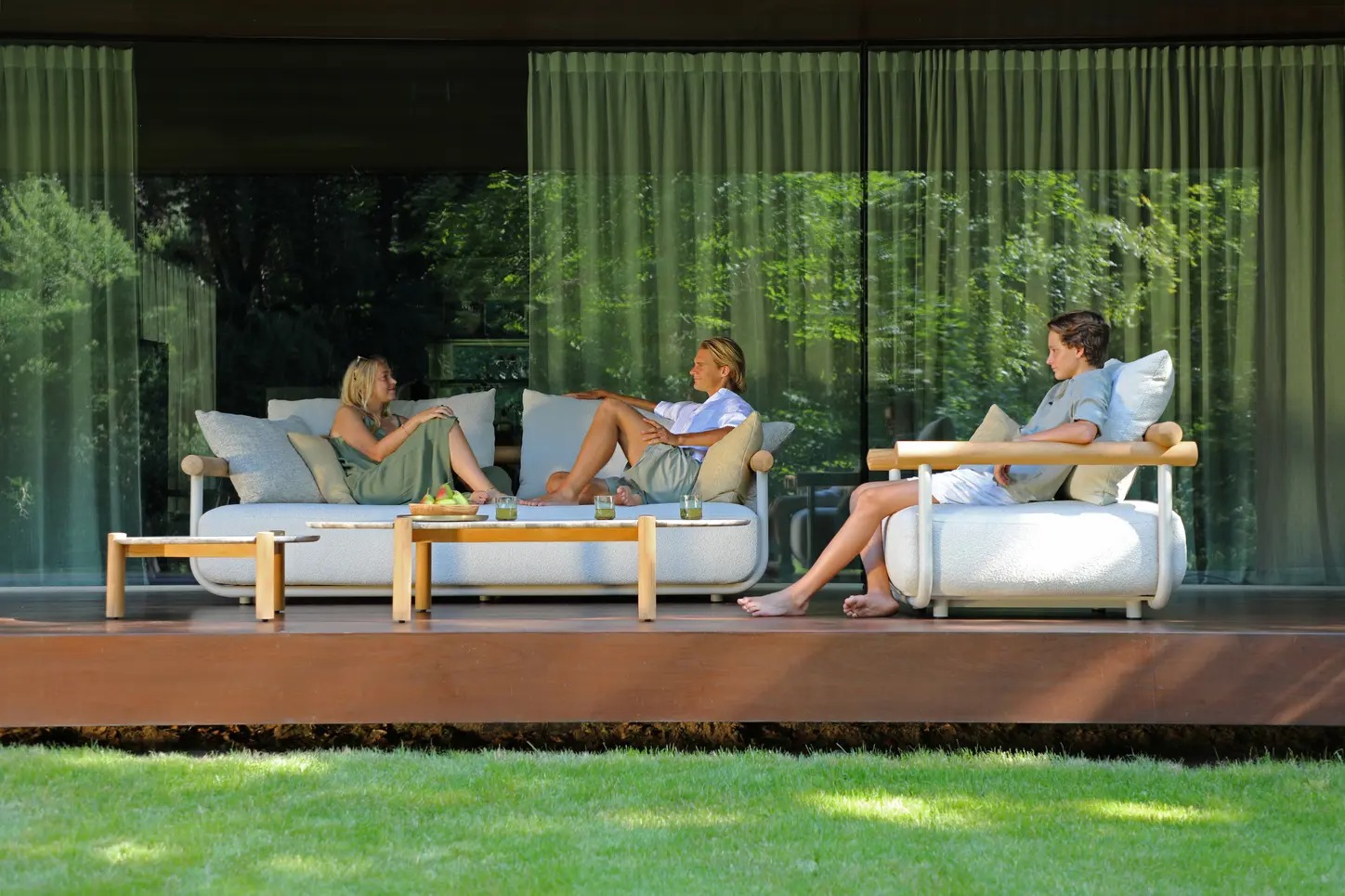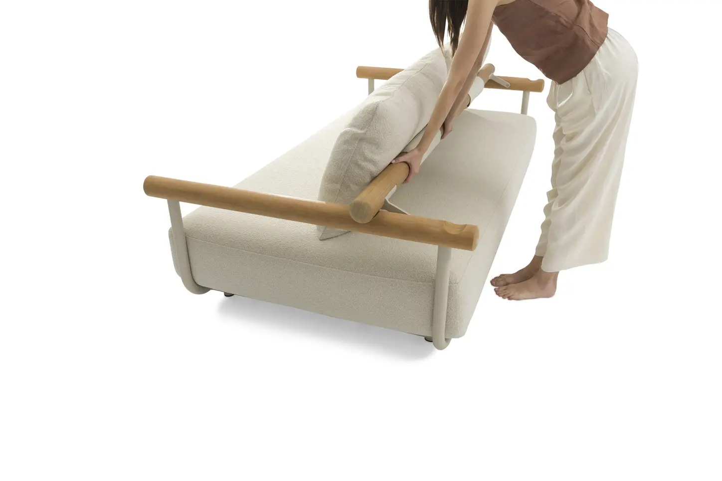 Поднимите круглую спинку и переверните ее. Подушки смещаются вместе с ней, мгновенно создавая более глубокое и удобное сиденье — идеальное для чтения, непринужденной беседы или кофе у бассейна.