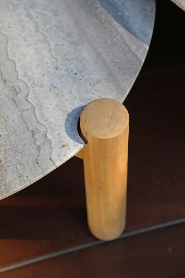 Ткань подушек- олефин с солнцезащитой и водоотталкивающей пропиткой. Столешница изготовлена из травертина (известняковая горная порода).