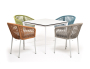 Каркас стульев выполнен из алюминия. Оплетка выполнена вручную современным материалом - роупом. Цвет оплетки - бирюзовый, салатовый меланж, оранжевый меланж и серый меланж. В комплект входят подушки со съёмными водоотталкивающими чехлами светло-серого цвета. "Малага" обеденный стол из HPL 90х90см, цвет молочный, каркас белый 1шт. 900Х900Х750, "Марсель" стул плетеный из роупа, каркас алюминий светло-серый (RAL7035) шагрень, роуп салатовый меланж круглый, ткань светло-серая 1шт. 570Х620Х800, "Марсель" стул плетеный из роупа, каркас алюминий светло-серый (RAL7035) шагрень, роуп бирюзовый круглый, ткань светло-серая 1шт. 570Х620Х800, "Марсель" стул плетеный из роупа, каркас алюминий светло-серый (RAL7035) шагрень, роуп оранжевый меланж круглый, ткань светло-серая 1шт. 570Х620Х800, "Марсель" стул плетеный из роупа, каркас алюминий светло-серый (RAL7035) шагрень, роуп серый меланж круглый, ткань светло-серая 1шт. 570Х620Х800,