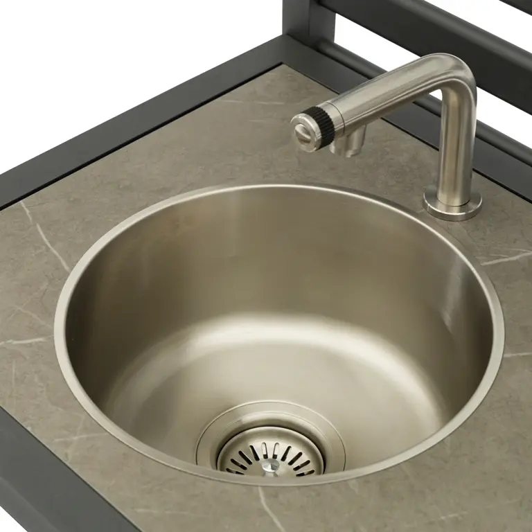 Эта раковина совместима с обычным садовым шлангом, что делает доступ к воде легким и удобным.
