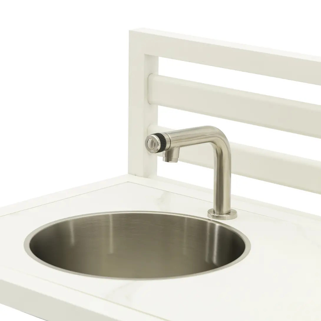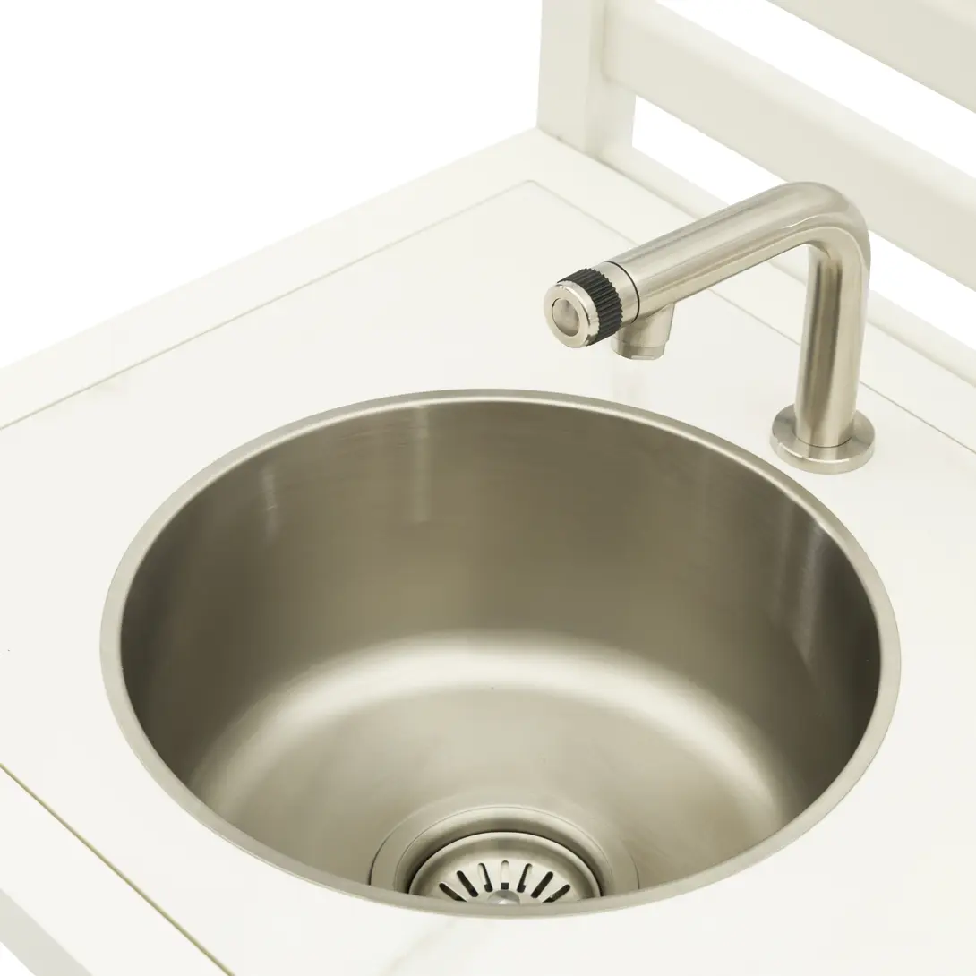 Эта раковина совместима с обычным садовым шлангом, что делает доступ к воде легким и удобным.