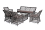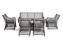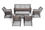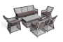 Оплетка выполнена вручную искусственным ротангом в цвете графит, диван и кресло укомплектованы подушками из 100% полиэстера, которые пропитаны специальным составом, обладающим влагоотталкивающим свойством. "Латте" диван двухместный из искусственного ротанга, цвет графит 1шт. 1 600Х660Х850, "Латте" плетеное кресло из искусственного ротанга, цвет графит 4шт. 550Х660Х850, "Гранд Латте" стол журнальный из искусственного ротанга, цвет графит 1шт. 1 120Х570Х450,