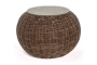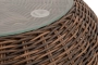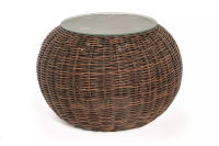 Каркас изготовлен из легкого алюминия и оплетен искусственным ротангом натурального коричневого оттенка. Поверхность столика дополнена стеклянной столешницей из закаленного стекла, толщиной 5 мм.