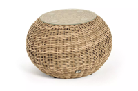 Каркас изготовлен из легкого алюминия и оплетен искусственным ротангом натурального соломенного оттенка. Поверхность столика дополнена стеклянной столешницей из закаленного стекла, толщиной 5 мм.