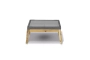 На деревянном каркасе кофейного столика закреплена столешница из высокопрочного стекла, которое имеет устойчивость к случайным повреждениям.