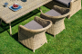 Диван и кресла укомплектованы подушками со съемными влагоотталкивающими чехлами. "Бергамо" плетеный угловой диванный модуль, цвет соломенный 1шт. 1 630Х900Х990, "Бергамо" плетеный левый модуль дивана, цвет соломенный 1шт. 1 150Х900Х990, "Бергамо" плетеный правый модуль дивана, цвет соломенный 1шт. 1 150Х900Х990, "Бергамо" плетеный центральный модуль дивана, цвет соломенный 1шт. 900Х900Х990, "Латте" плетеный стол из искусственного ротанга 160х90см, цвет соломенный 1шт. 1 600Х900Х750, "Равенна" плетеное кресло из искусственного ротанга, цвет соломенный с серой подушкой 3шт. 570Х680Х810,