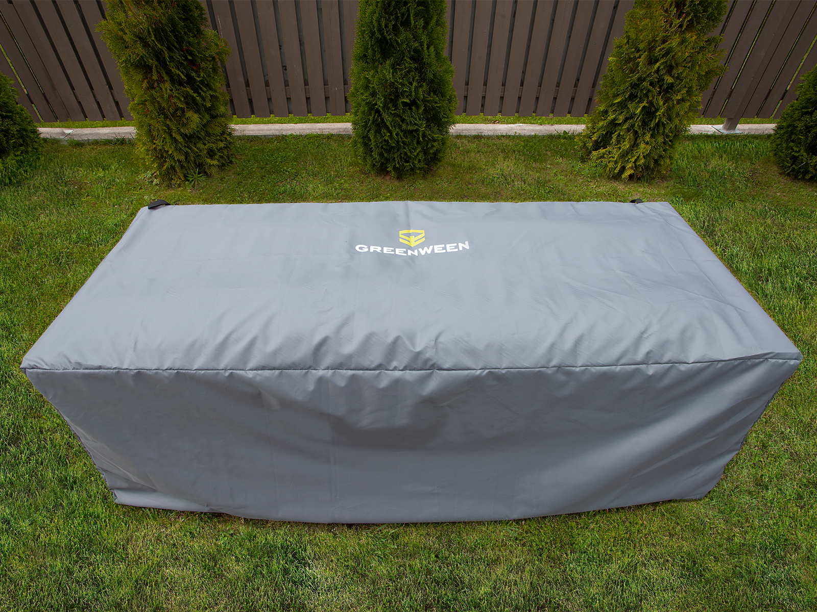 Уличный чехол укрывает диван от осадков и пыли, продлевает срок службы садовой мебели.