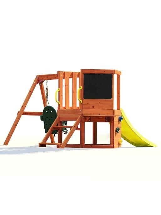 Детская уличная площадка МЕТРОПОЛИС — этомногофункциональный игровой комплекс с деревянным домиком, горкой, столиком, грифельной доской, скалодромом и качелями. Конструкция выполнена из прочного дерева, устойчивого к погодным условиям. Подходит для установки на даче, во дворе частного дома или на загородном участке.
