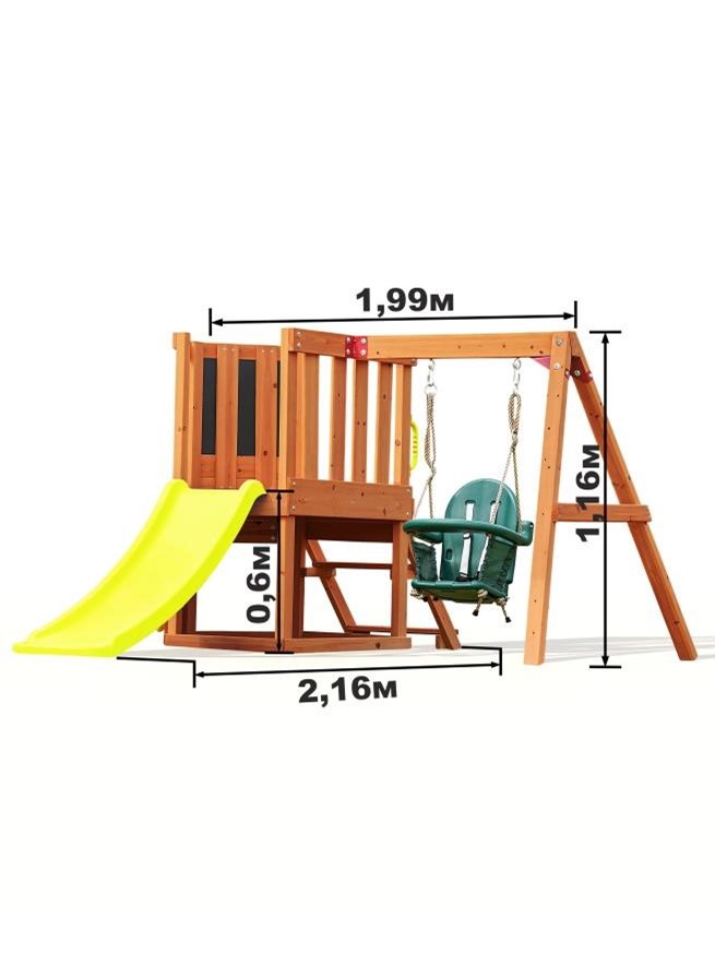 Детская игровая площадка МЕТРОПОЛИС с горкой и качелями. Уличный игровой комплекс из дерева. Домик, горка, качели.