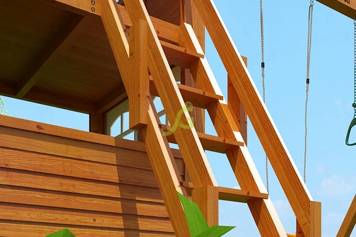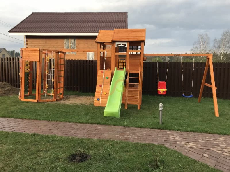 Детская площадка преимущественно изготовлена из дерева. При работе с природным материалом учитываются следующие требования: