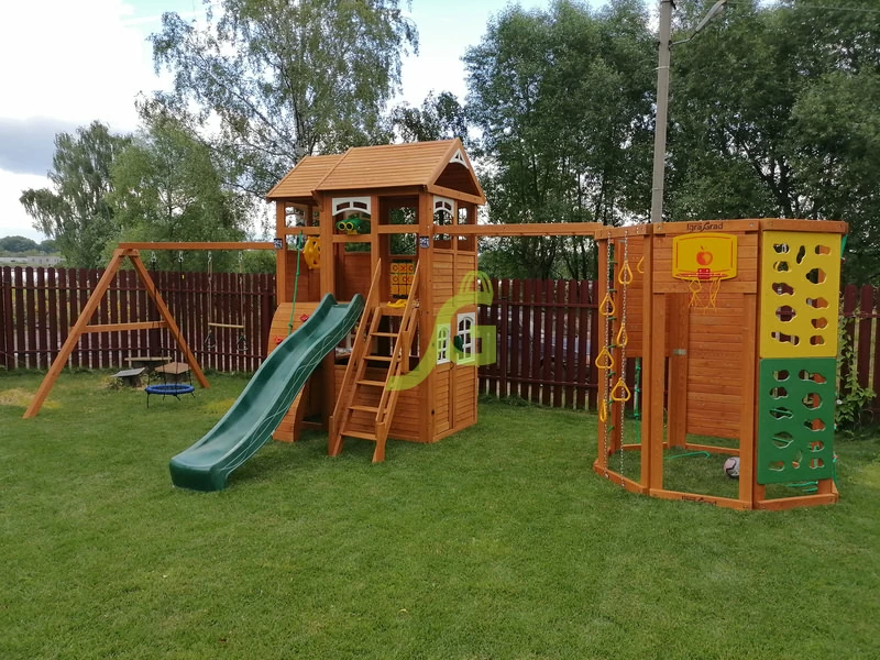 Детская площадка для улицы – целый развлекательный комплекс, который должен решать ряд определённых задач. Для малышей они должны обладать ярким дизайном для правильного психического развития, а для деток постарше важно наличие конструктивных элементов для игр. Ни в коем случае нельзя упускать функциональность игрового сооружения – он должен быть полезен для детей разных возрастов. Именно таким качеством обладает детская площадка IgraGrad Клубный домик 2 с WorkOut Luxe, которую можно купить для установки на даче, во дворе детского сада, школы.