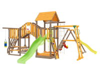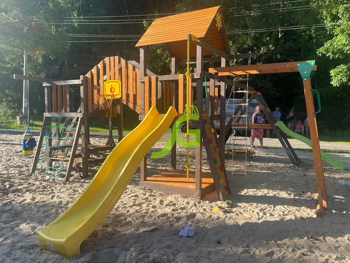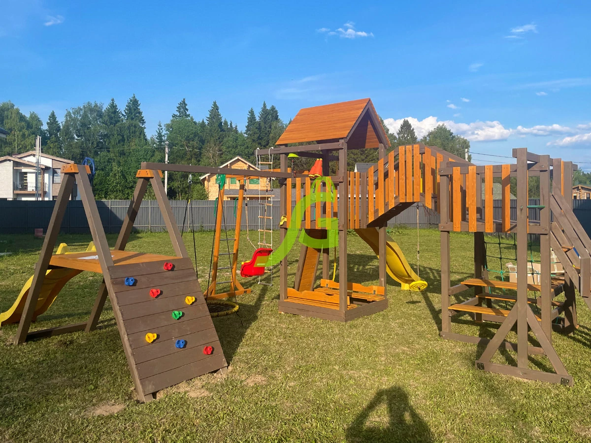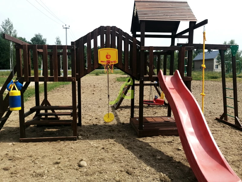 - Экологичность. Производство игровой площадки основано на использовании качественных нетоксичных материалов: натуральная древесина, пропитка на водной основе, имеющая сертификат безопасности для изготовления детских игрушек.
