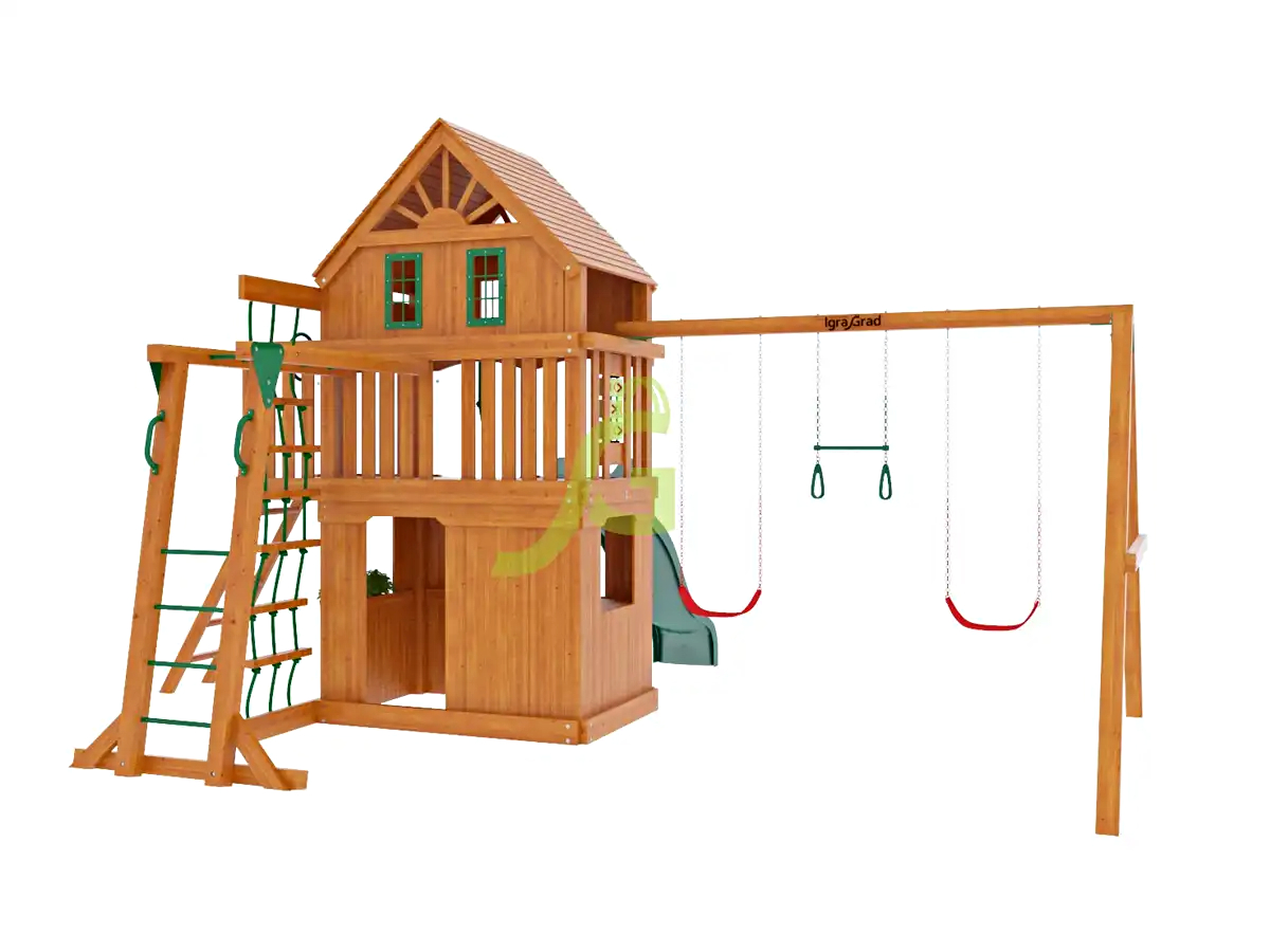 Купить детскую площадку нужно! Ведь она выполнена с любовью к детям. Деревянные материалы тщательно отшлифованы, чтобы не повредилась нежная кожа деток. Усиленные комплектующие. Для сборки конструкции не требуется много времени, с помощью понятной инструкции детскую площадку из дерева можно собрать за несколько часов.