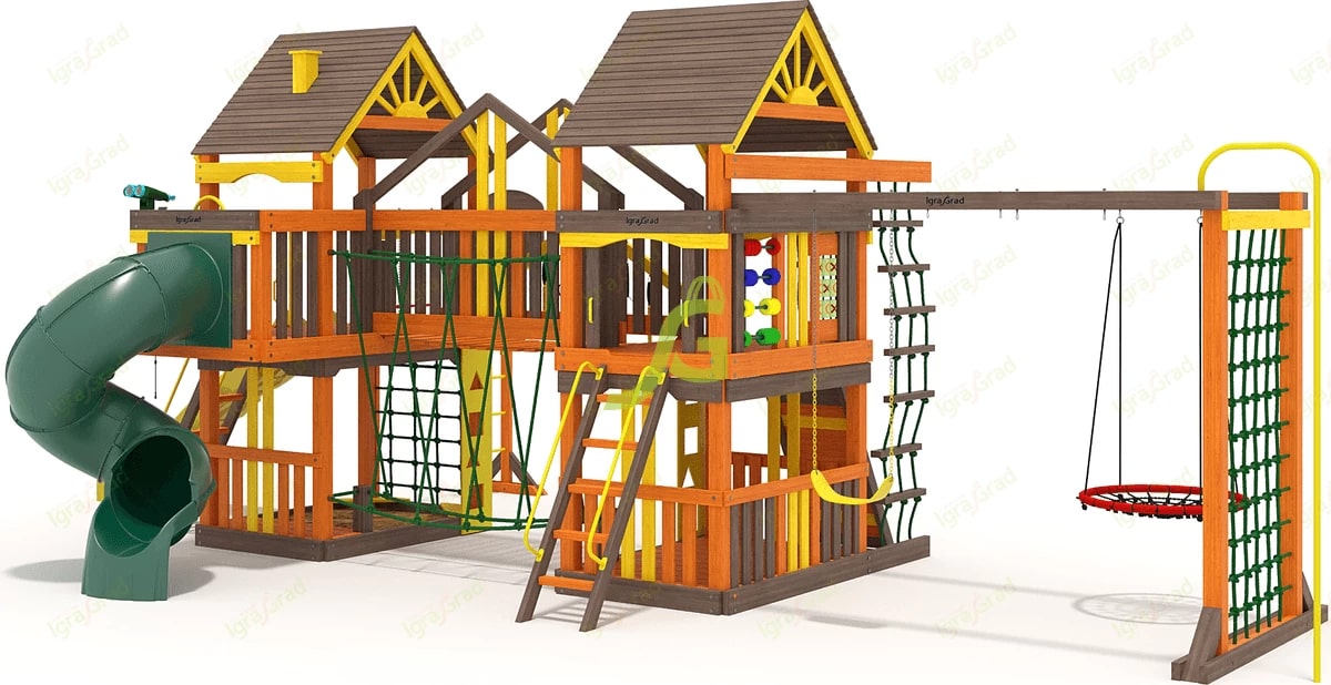 Все дети мечтают, чтобы родители водили их в парк или игровой комплекс, но, как это сделать, если работа занимает много времени? Ответ прост! Закажите одним кликом суперсовременную детскую площадку «IgraGrad Шато Sun (мод.2)». Теперь, Вам осталось дождаться курьеров и смонтировать игровую площадку на огороженном участке возле дома.