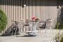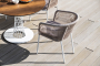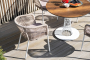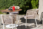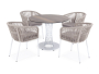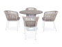4 кресла из коллекции "Марсель", выполненных из алюминиевого каркаса и ручной оплетки роупом. Это эластичные синтетические ленты из высокопрочных полиэфирных волокон, представлены в бежевом цвете.