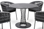 Обеденная группа "Диего" является стильным и практичным решением для обустройства кухни или жилой зоны, она идеально сочетается с различными интерьерами благодаря универсальности использованных материалов и цвета. Она подходит как для ежедневного использования, так и для приема гостей, обеспечивая удобство сидения и качественное исполнение всех элементов. "Диего" обеденный стол из HPL круглый Ø100см, цвет "серый гранит" 1шт. 1 000Х1 000Х750, "Бордо" стул плетеный из роупа (колос), каркас из стали серый (RAL7022) муар, роуп серый 15мм, ткань серая 4шт. 570Х620Х800,