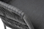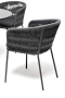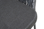 Вместе с этим, в комплектацию входит 4 плетеных стула "Бордо", выполненных с использованием высокопрочного роуп-волокна серого цвета с плетением вида "колос". Стулья имеют размеры 570х620х800 мм и устойчивый каркас из стали, окрашенной порошковой краской в тон материала плетения.