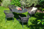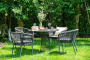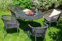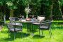 4 кресла из коллекции "Марсель", выполненных из алюминиевого каркаса и ручной оплетки роупом. Это эластичные синтетические ленты из высокопрочных полиэфирных волокон, представлены в темно-сером цвете.