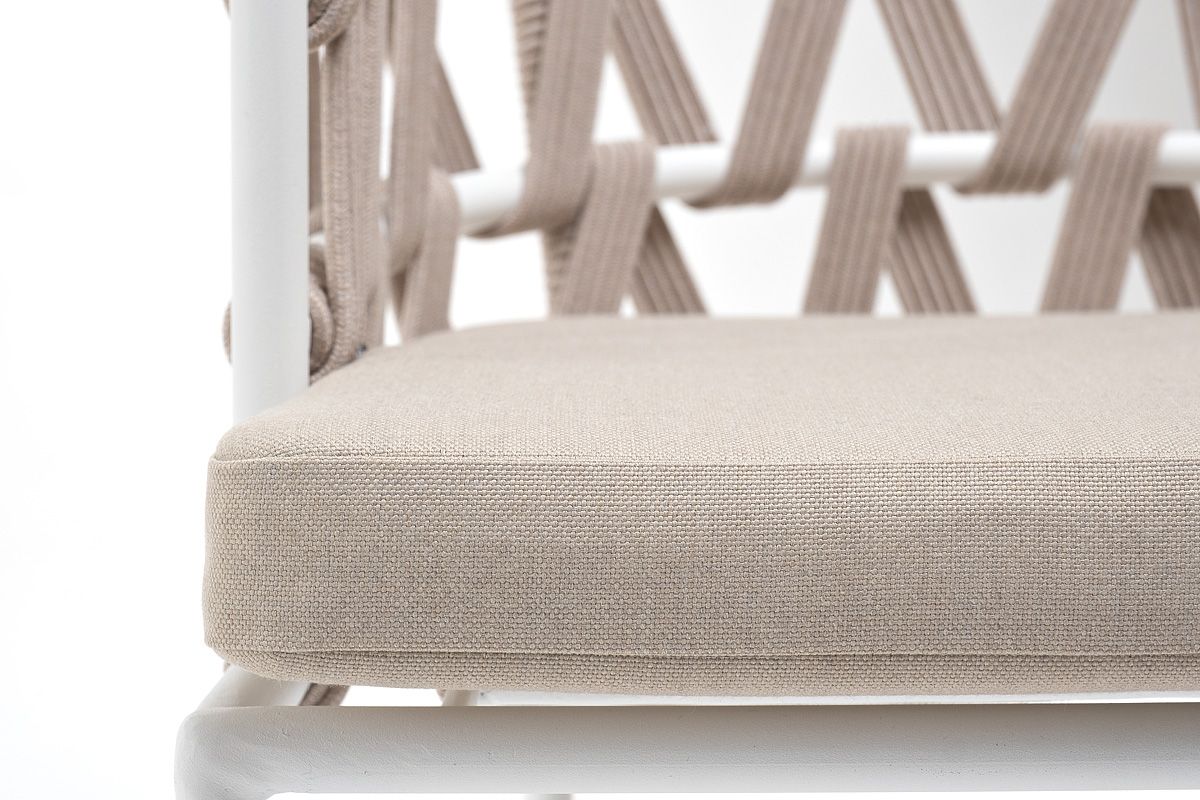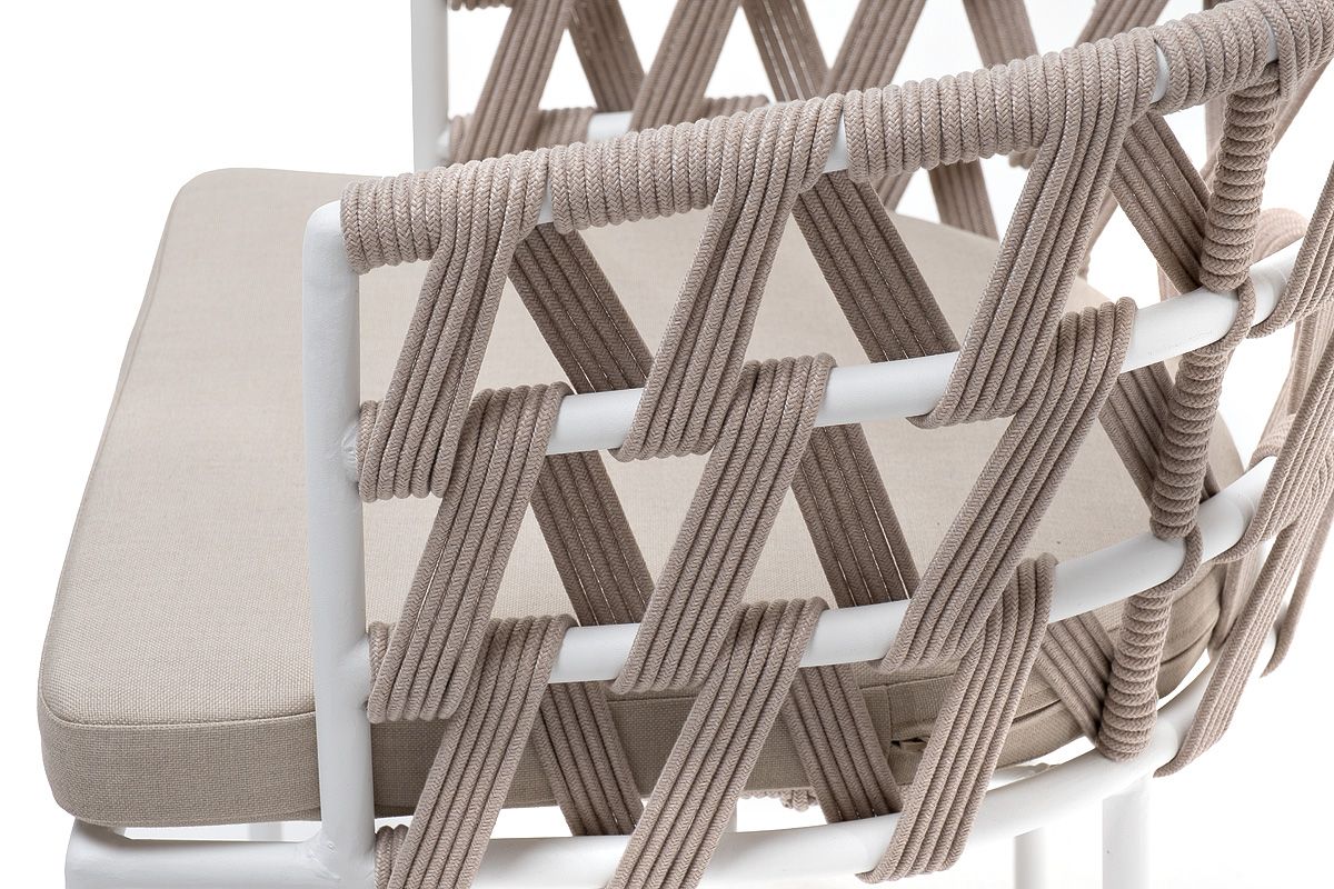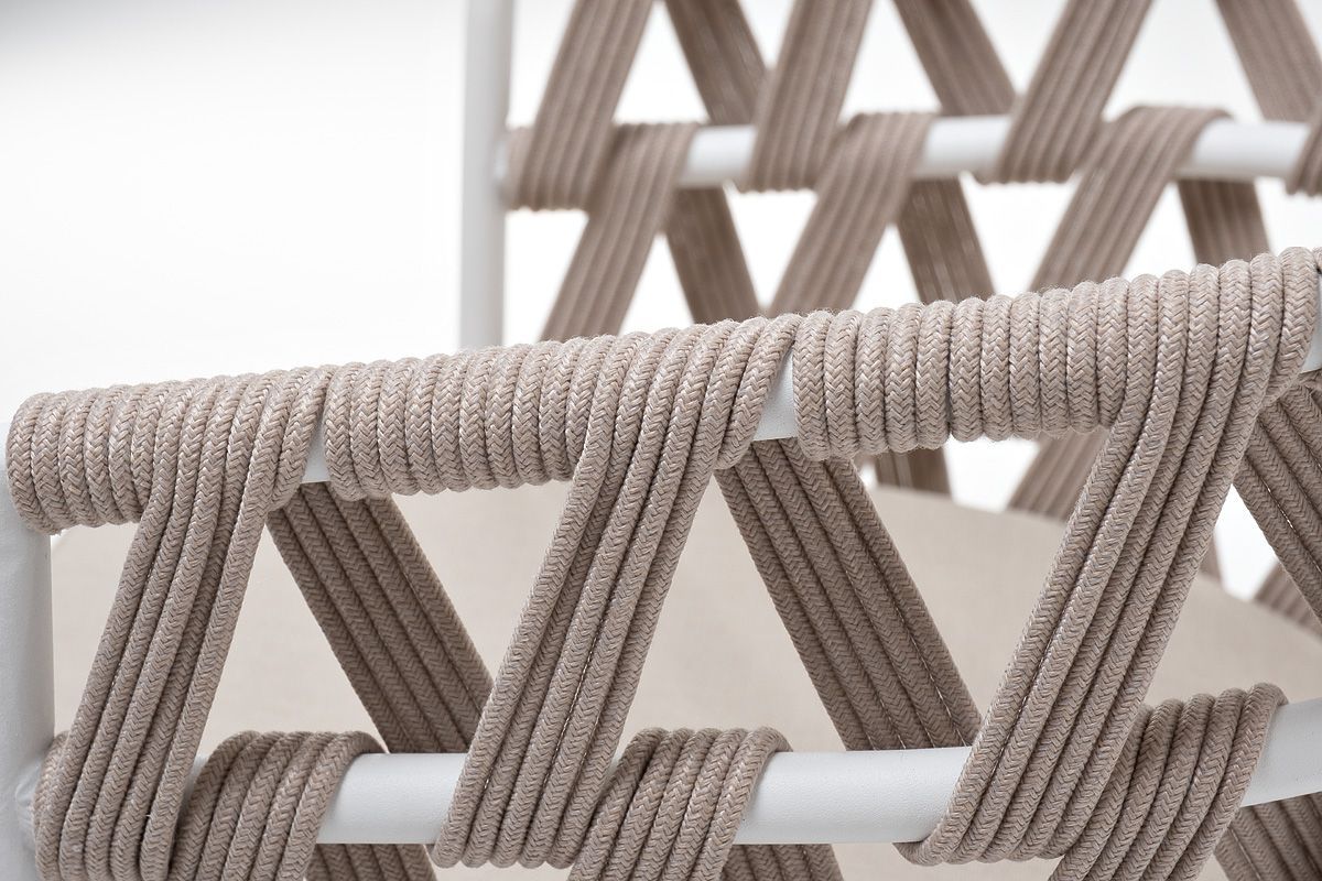 Каркас вручную оплетен бежевым роупом - эластичными синтетическими лентами из высокопрочных полиэфирных волокон.