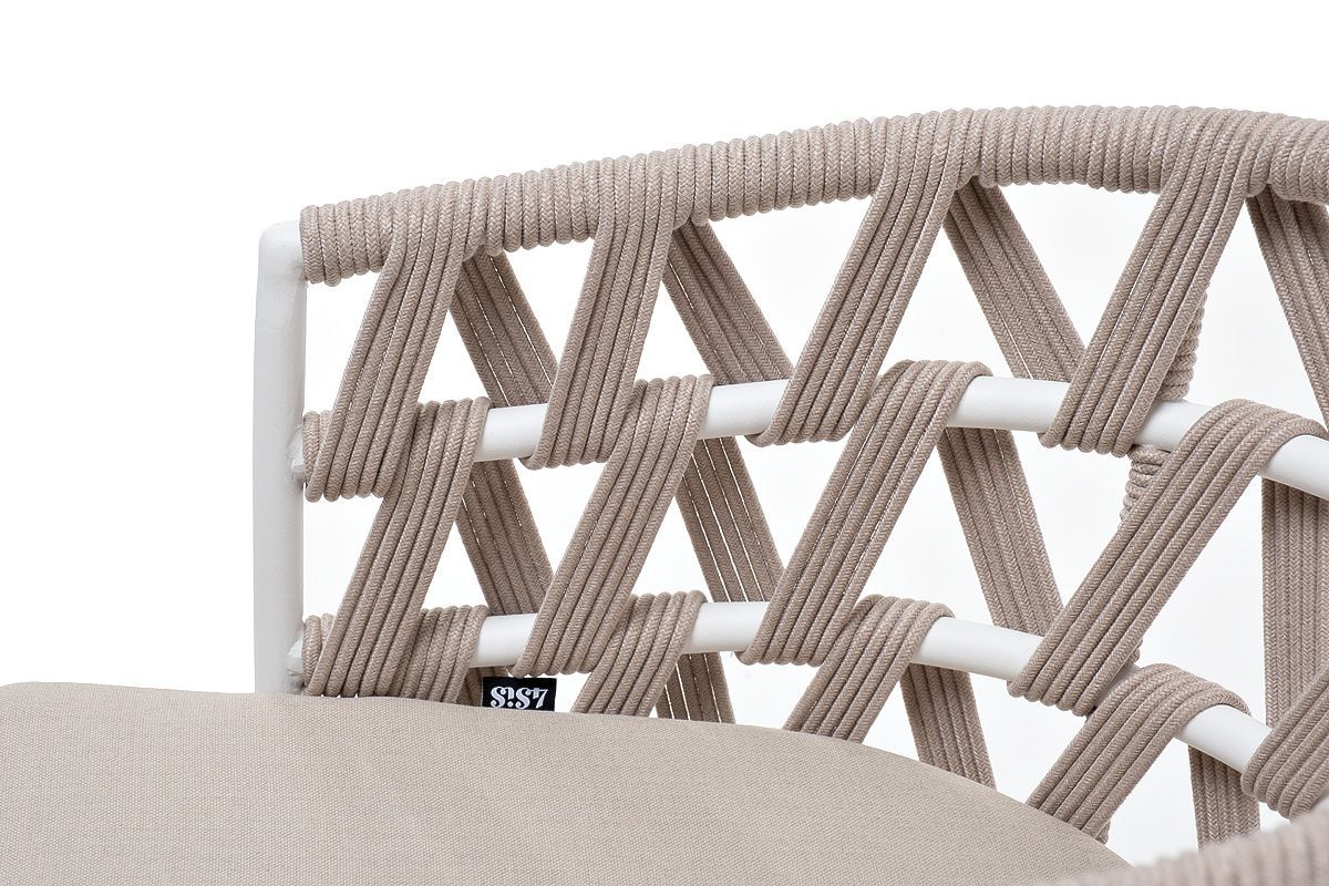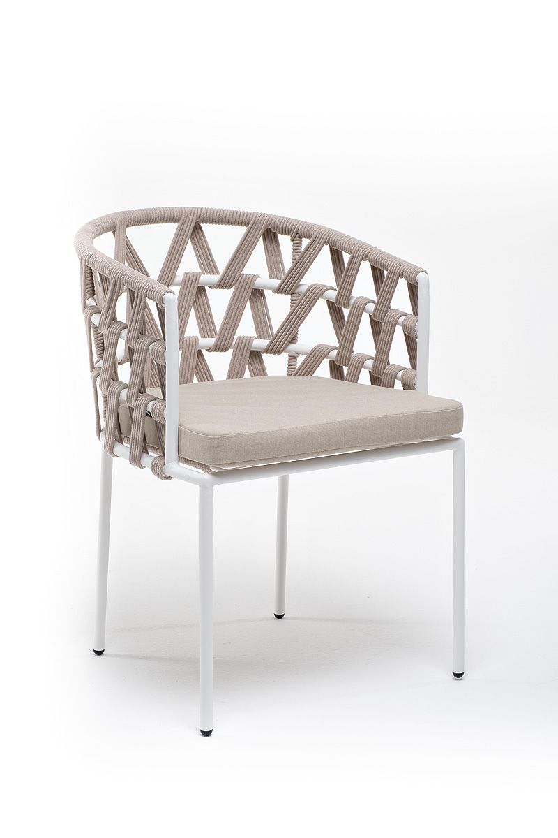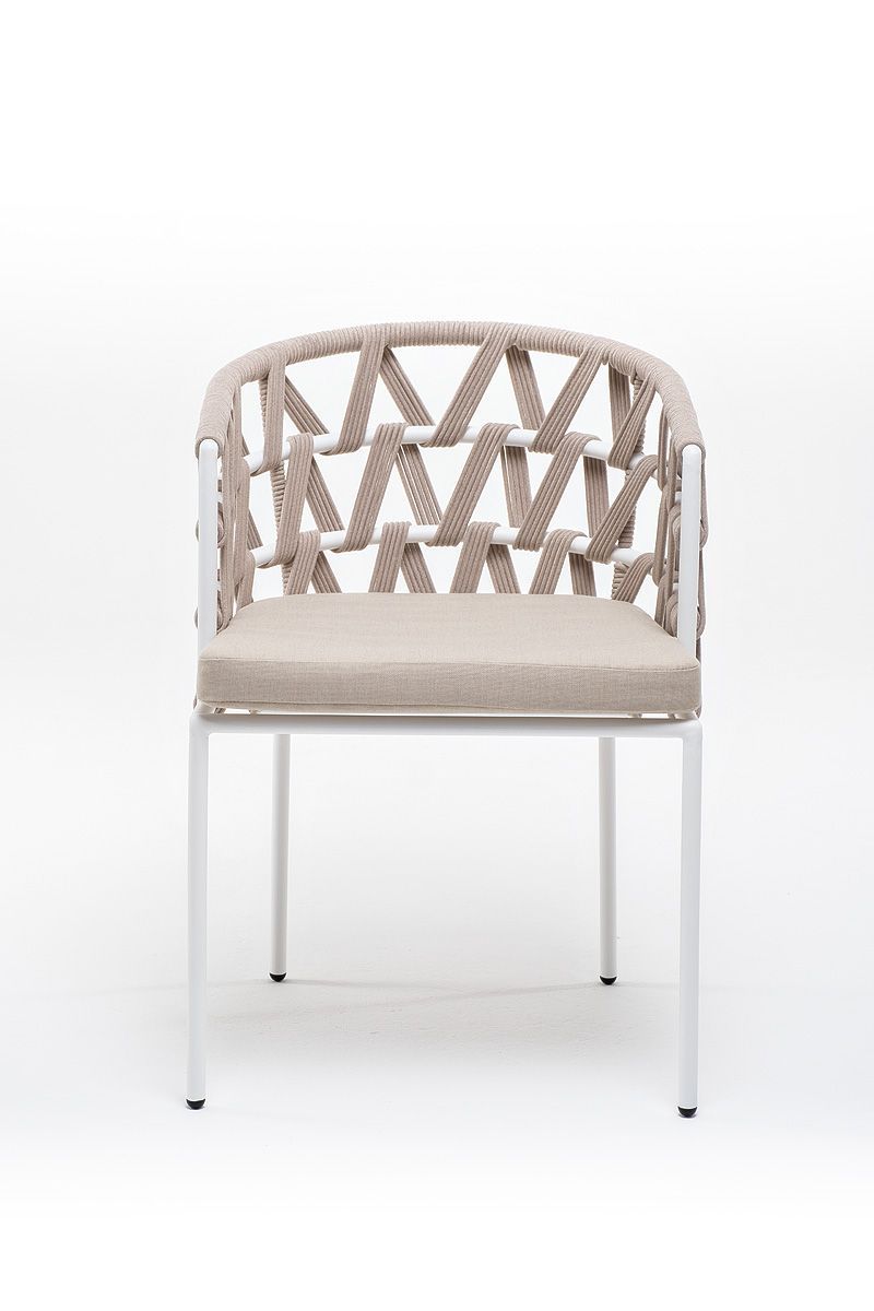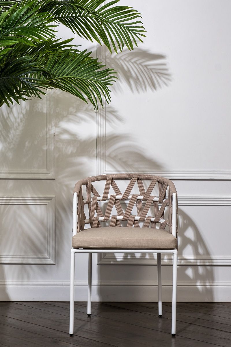 Каркас вручную оплетен бежевым роупом - эластичными синтетическими лентами из высокопрочных полиэфирных волокон.