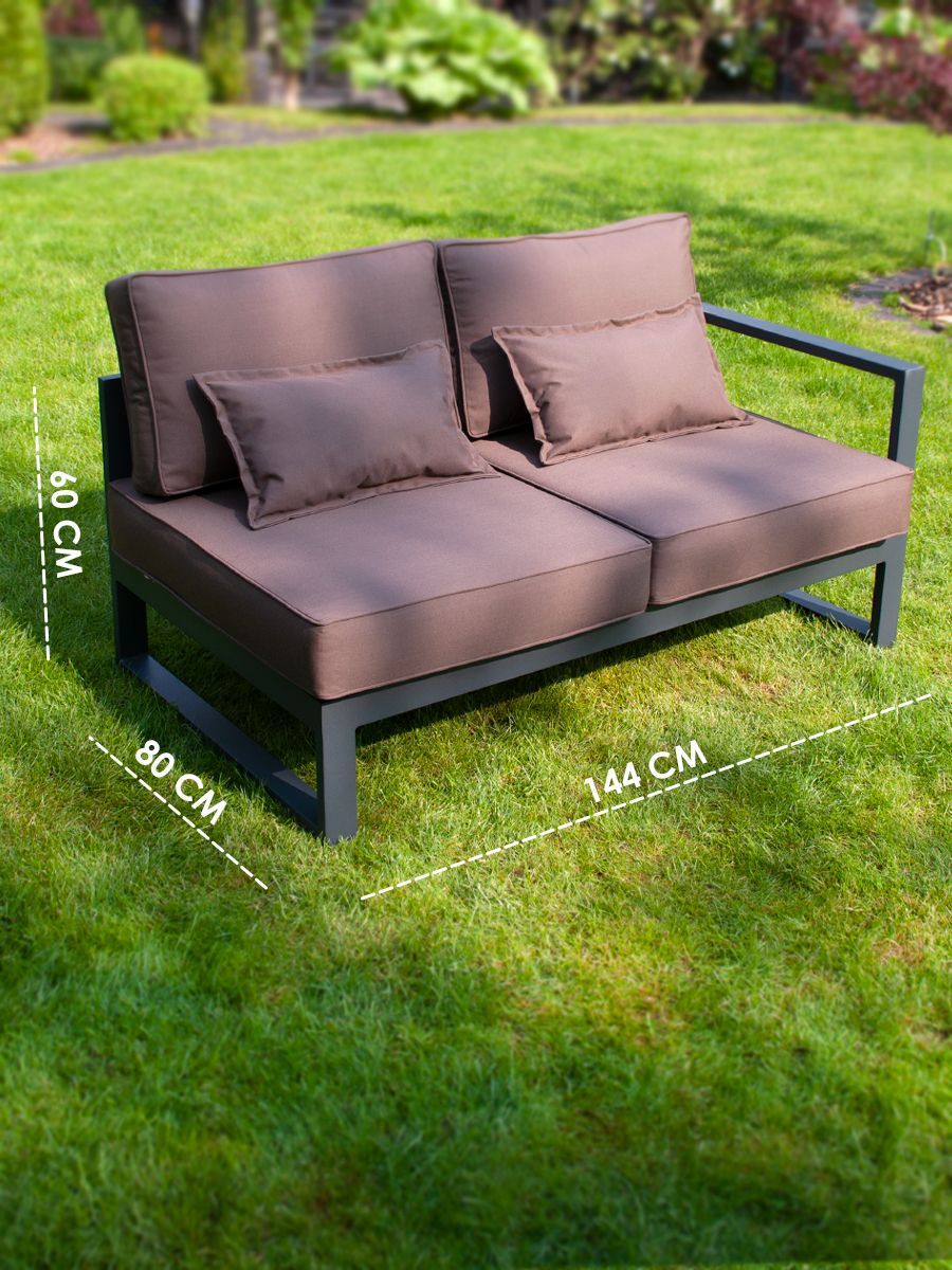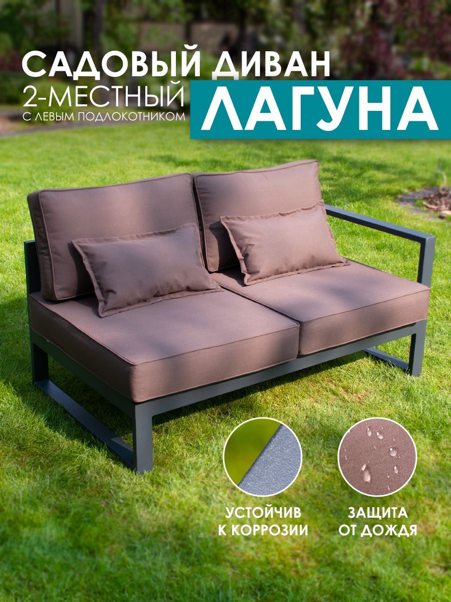 Диван Callisto giardino "Лагуна" 2-х местный (с левым подлокотником). Каркас: алюминий, окрашенный в цвет антрацит. Размеры дивана ШхВхГ 1380х600х800 мм. Размеры подушек: для сиденья ШхВхГ 660х120х800 мм; Вес: 3 кг. Подушка под спину 660х390 мм. Вес: 1,8 кг. Ткань оксфорд, устойчива к истиранию, выгоранию на солнце, влагоотталкивающая. Наполнитель: многослойный формованный ППУ различной плотности, синтепон и спанбонд. Чехлы подушек на молнии. Вес изделия: 12,2 кг. Продукция поставляется в собранном виде (каркас дивана + 6 подушек). Нагрузка до 240 кг. Гарантия: 12 месяцев.