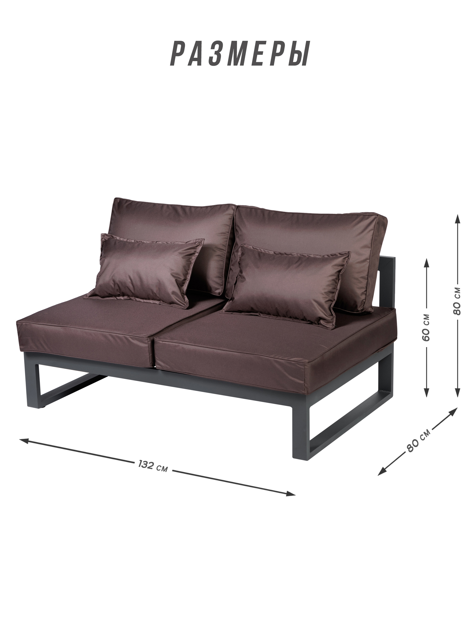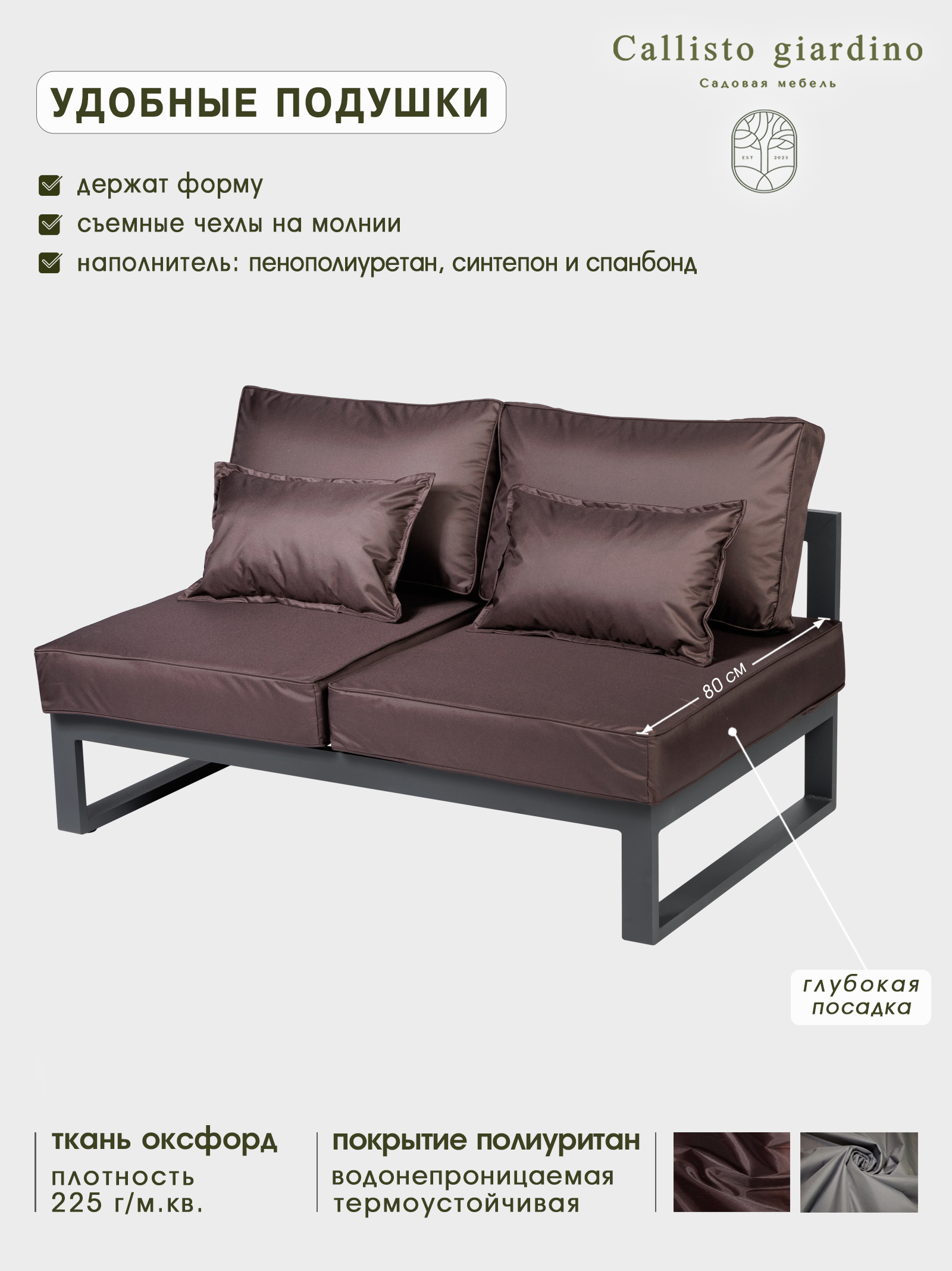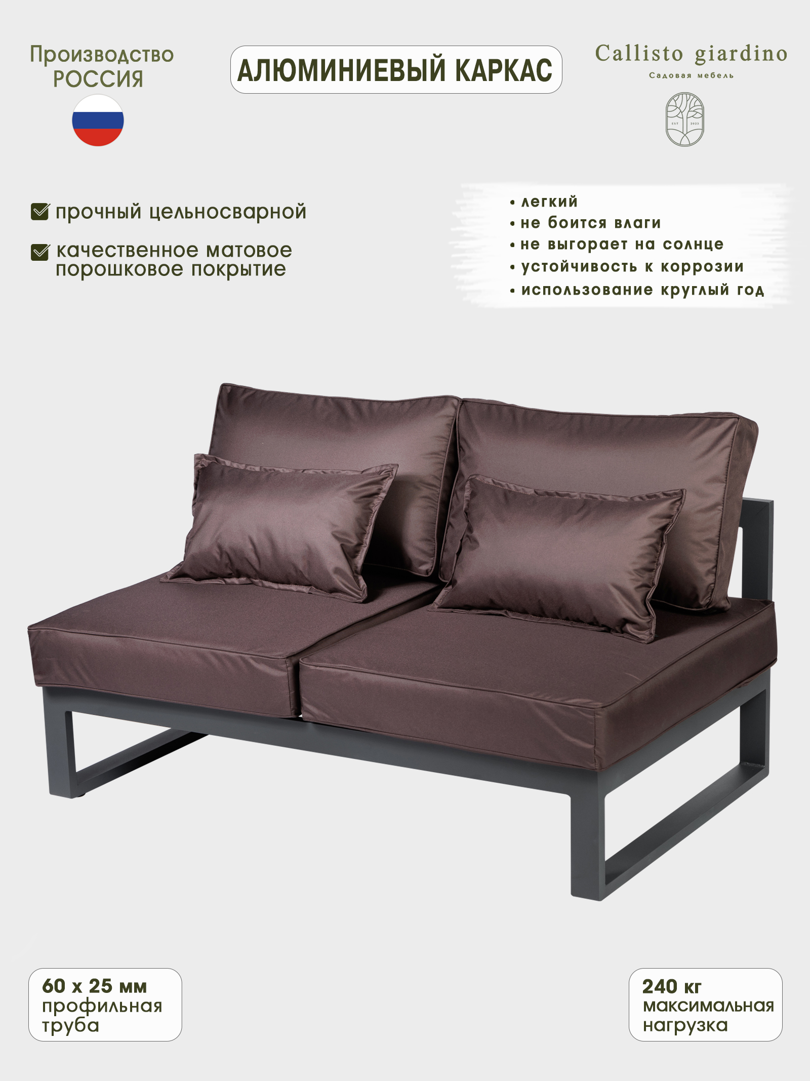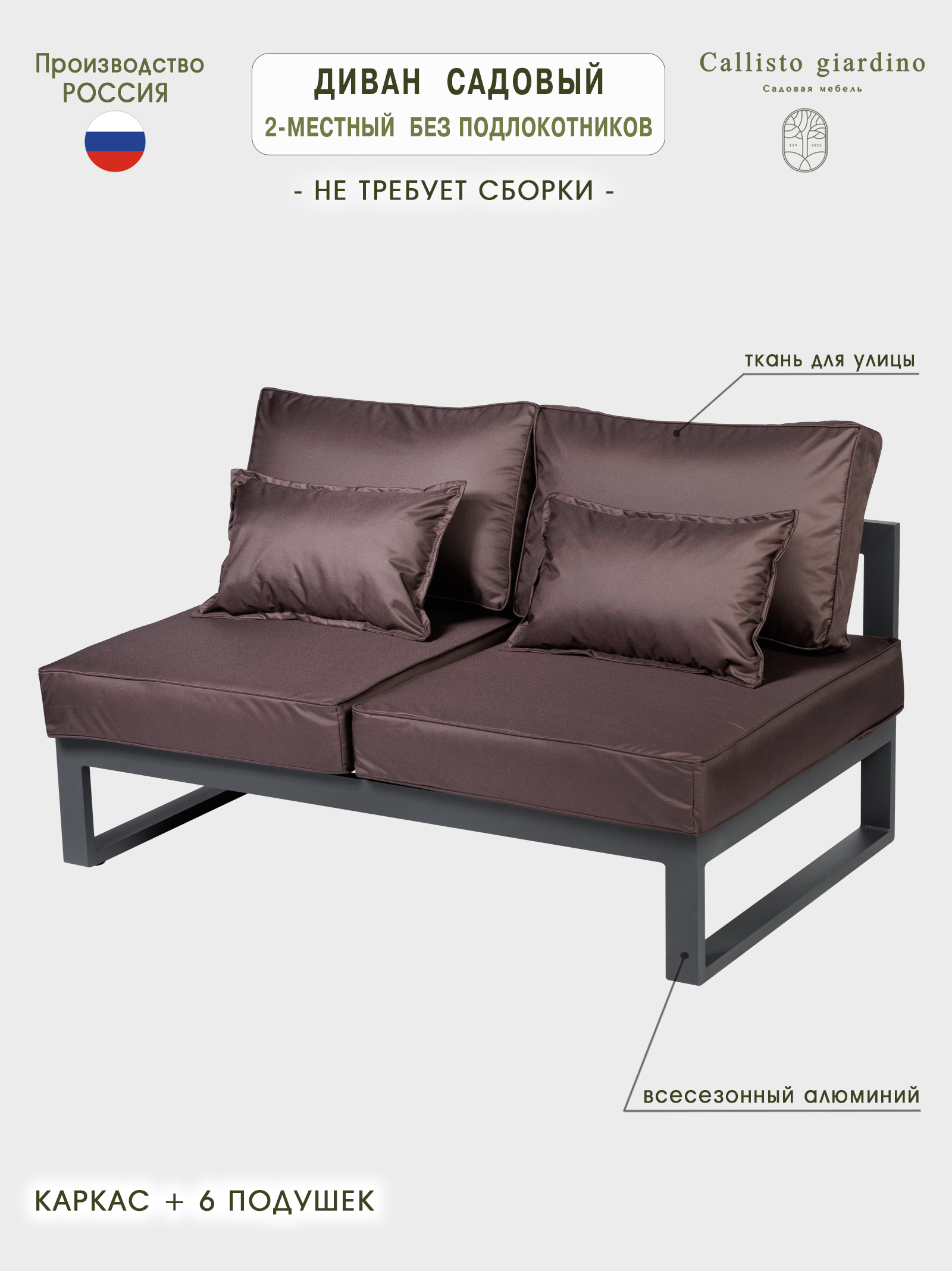 Диван садовый из алюминия 2-х местный открытый без подлокотников Callisto giardino4 шоколад/антрацит