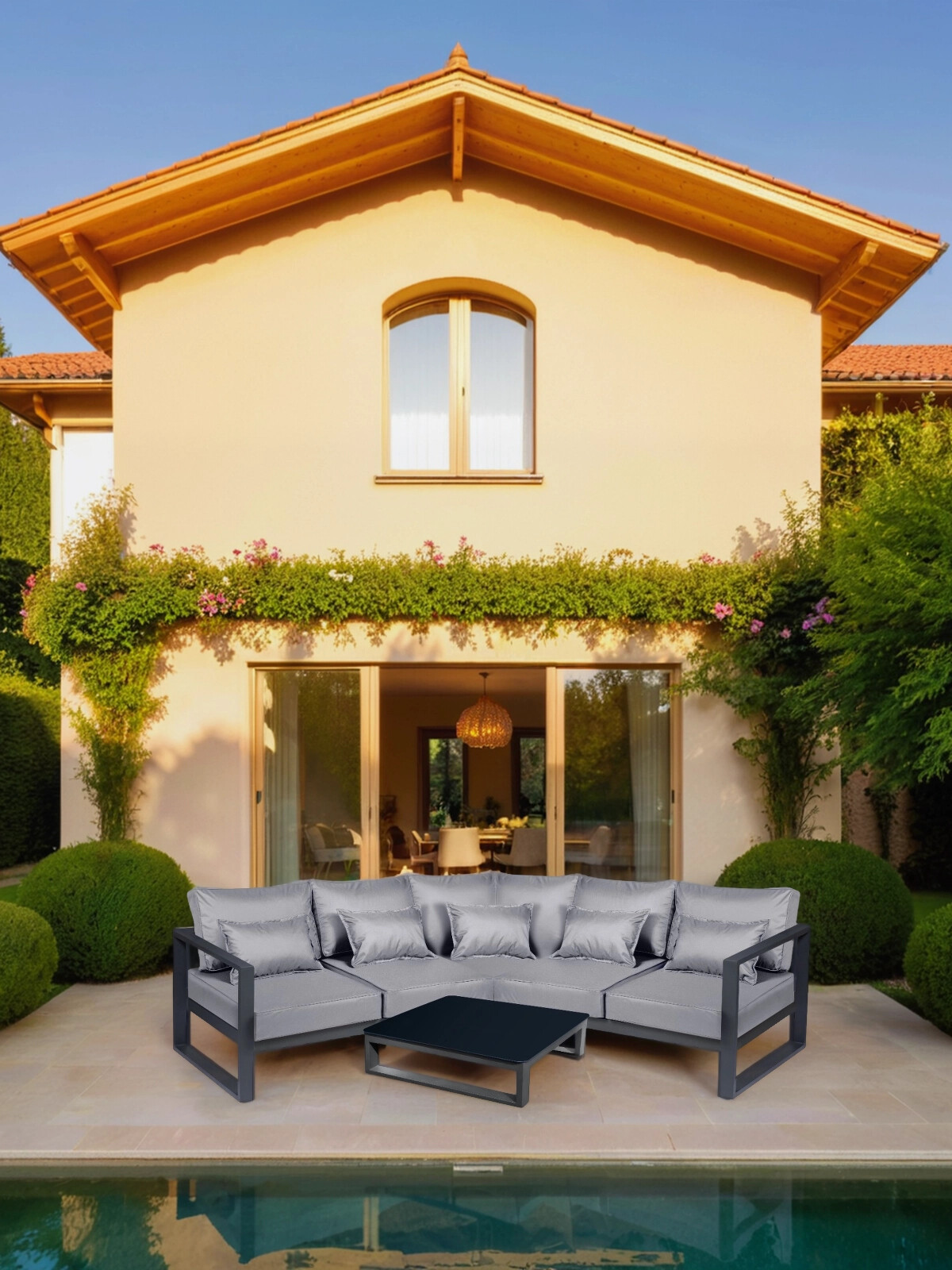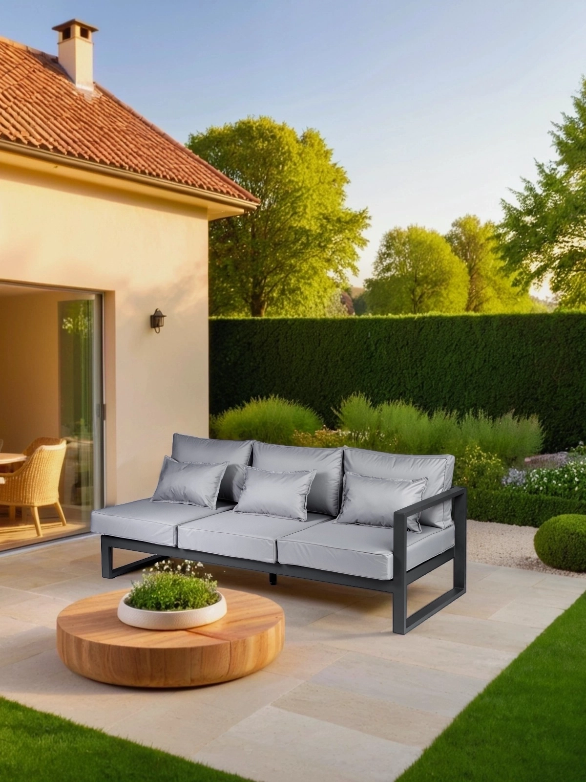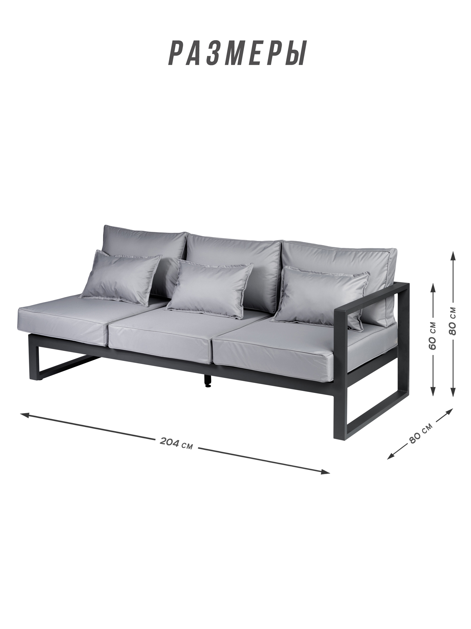 Диван Callisto giardino "Лагуна" 3-х местный правый (с левым подлокотником). Каркас: алюминий, окрашенный в цвет антрацит. Размеры дивана ШхВхГ 2040х600х800 мм. Размеры подушек: для сиденья ШхВхГ 660х120х800 мм; Вес 3 кг. Подушка под спину 660х390 мм. Вес 1,8 кг. Ткань оксфорд, устойчива к истиранию, выгоранию на солнце, влагоотталкивающая. Наполнитель: многослойный формованный ППУ различной плотности, синтепон и спанбонд. Чехлы подушек на молнии. Вес каркас: 16 кг. Продукция поставляется в собранном виде (каркас дивана + 9 подушек). Нагрузка до360 кг. Гарантия: 12 месяцев.
