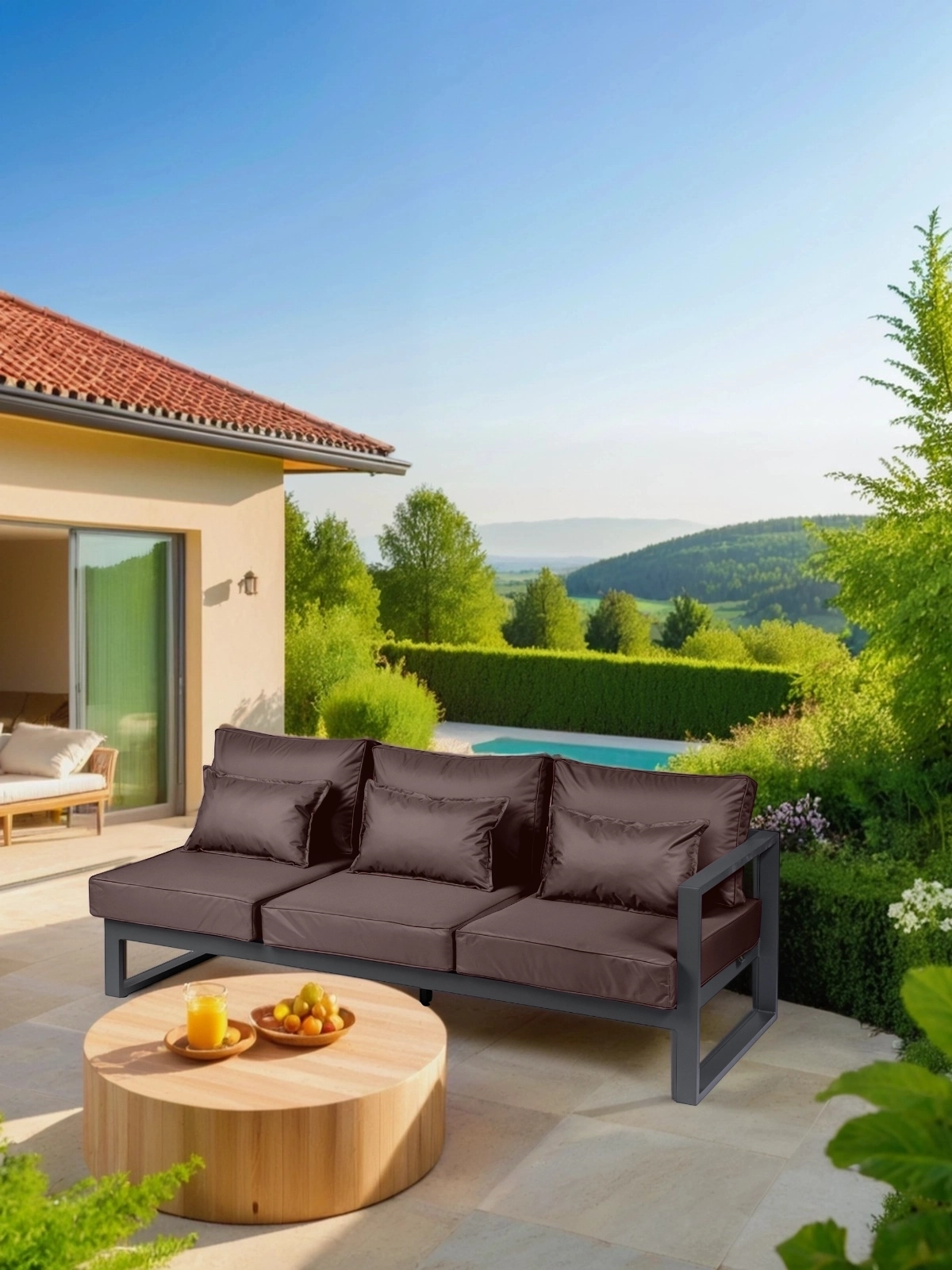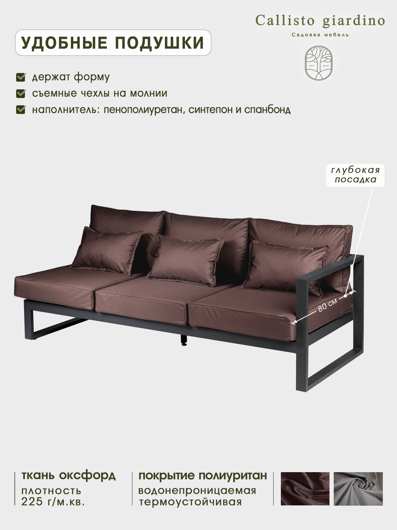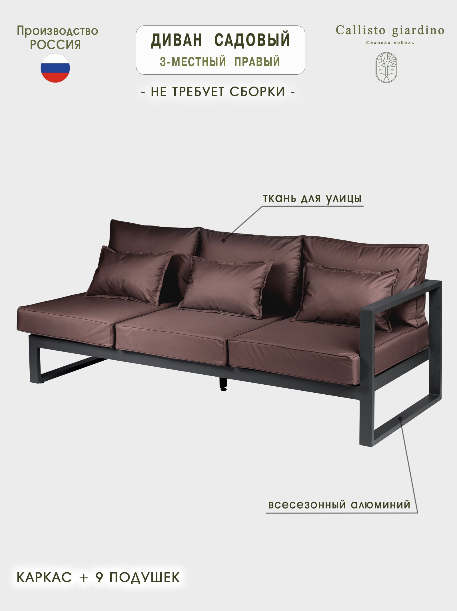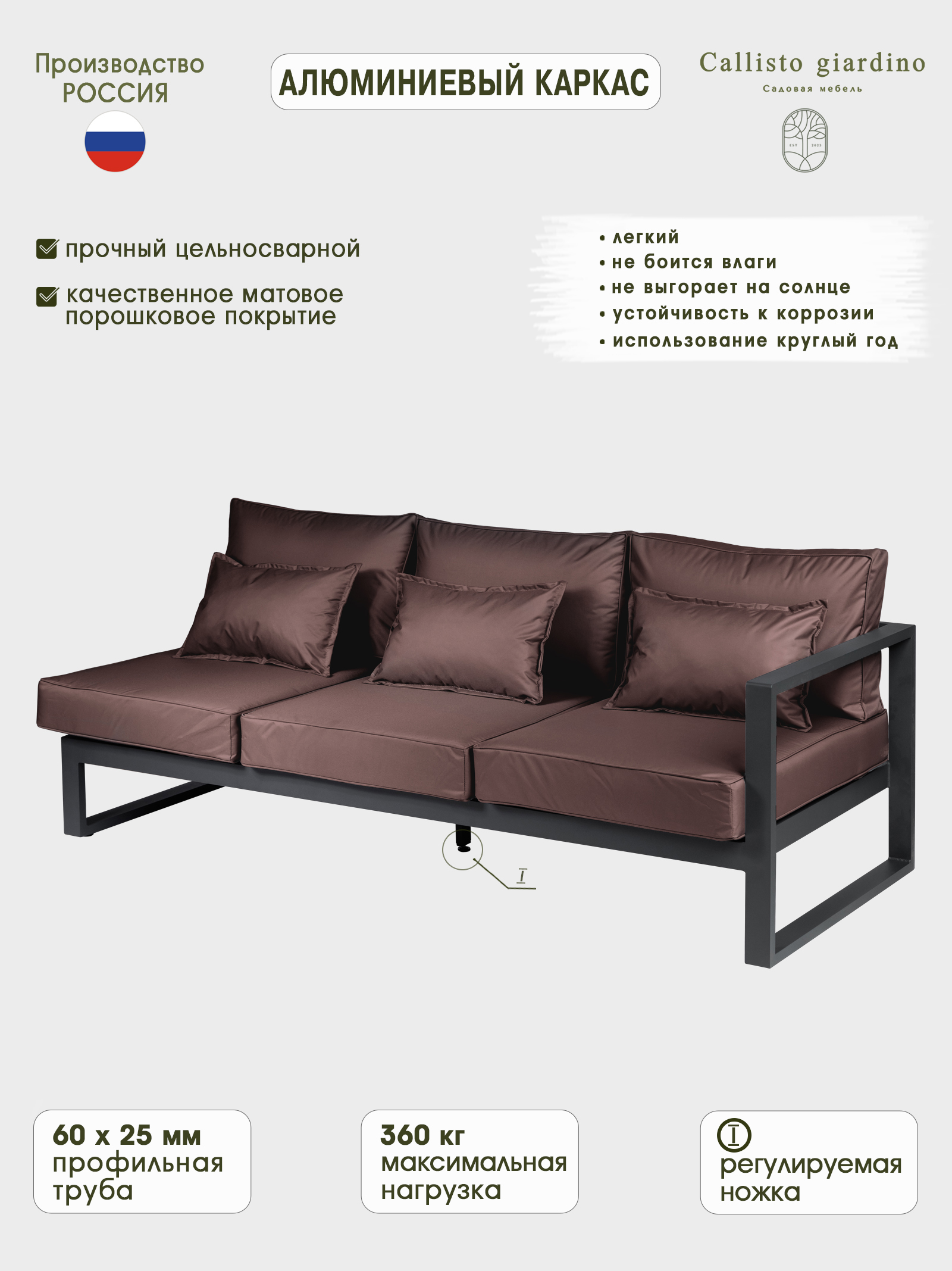 Диван садовый из алюминия 3-х местный правый с левым подлокотником Callisto giardino шоколад/антрацит