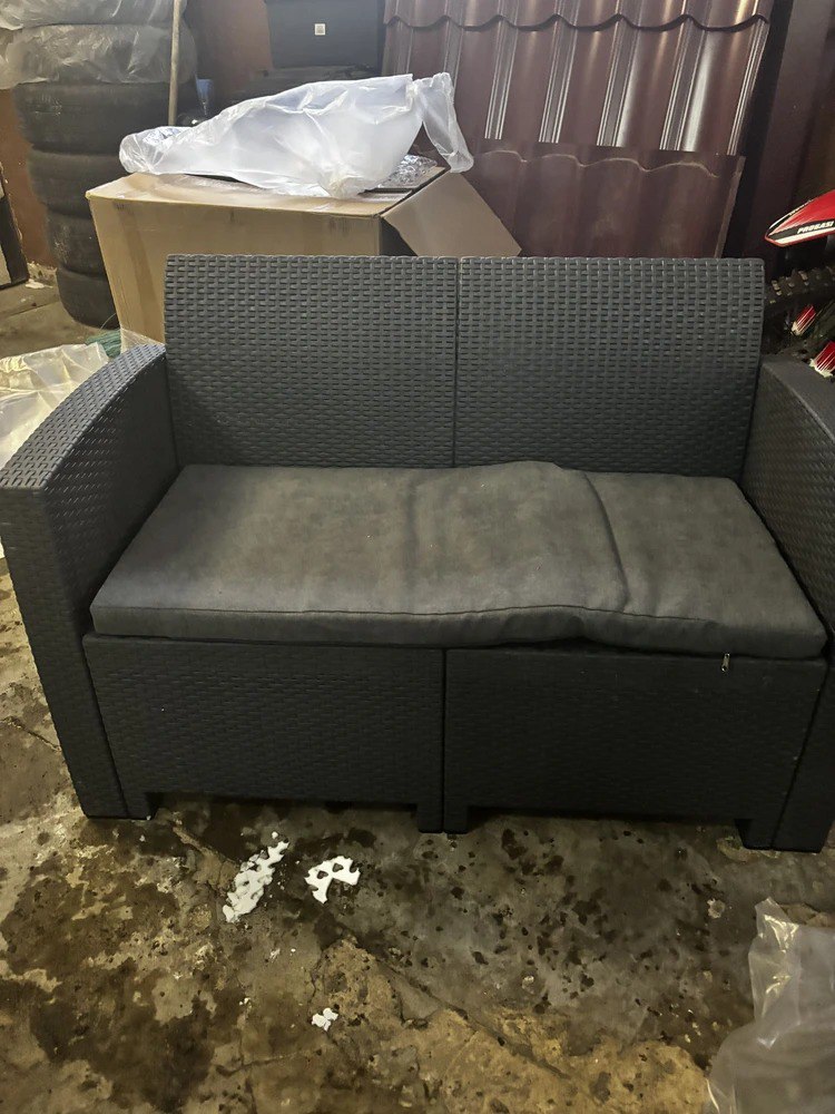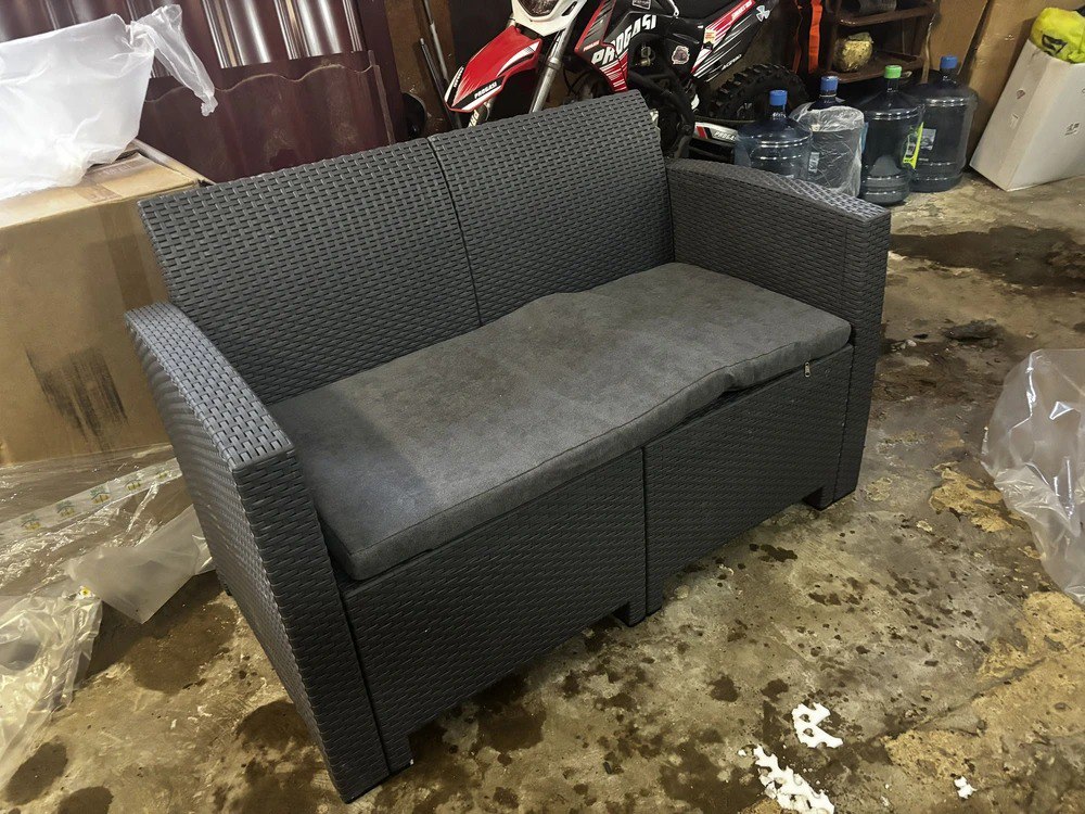 Уютный уголок для двоих в современном стиле. Этот компактный диван в насыщенном графитовом цвете идеально подойдет для небольших террас, балконов или уютных садовых зон.