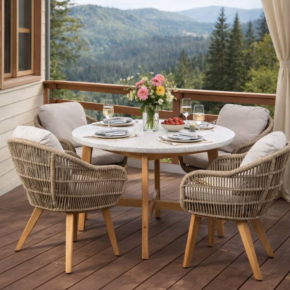 Превратите свою террасу или балкон в изысканное место для семейных обедов и дружеских встреч с обеденным комплектом ELEONORA на 4 персоны. Этот набор сочетает в себе элегантность, практичность и комфорт, чтобы каждый приём пищи стал маленьким праздником.