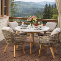 - Комфорт в деталях: мягкие подушки на креслах делают пребывание на свежем воздухе по-настоящему приятным. Они легко снимаются для чистки, что упрощает уход за комплектом.