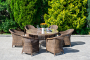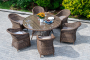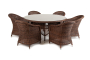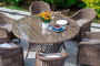 В комплект входит круглый обеденный стол «Эспрессо» (1500×1500×750 мм) с ударопрочной стеклянной столешницей и 6 кресел коллекции «Равенна» 680×570×810 мм. "Эспрессо" плетеный круглый стол, диаметр 150 см, цвет коричневый 1шт. 1 500Х1 500Х740, "Равенна" плетеное кресло из искусственного ротанга, цвет коричневый с серой подушкой 6шт. 570Х680Х810,