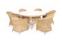 В комплект входит круглый обеденный стол «Эспрессо» (1500×1500×750 мм) с ударопрочной стеклянной столешницей и 6 кресел коллекции «Равенна» 680×570×810 мм. "Эспрессо" плетеный круглый стол, диаметр 150 см, цвет соломенный 1шт. 1 500Х1 500Х750, "Равенна" плетеное кресло из искусственного ротанга, цвет соломенный с серой подушкой 6шт. 570Х680Х810,